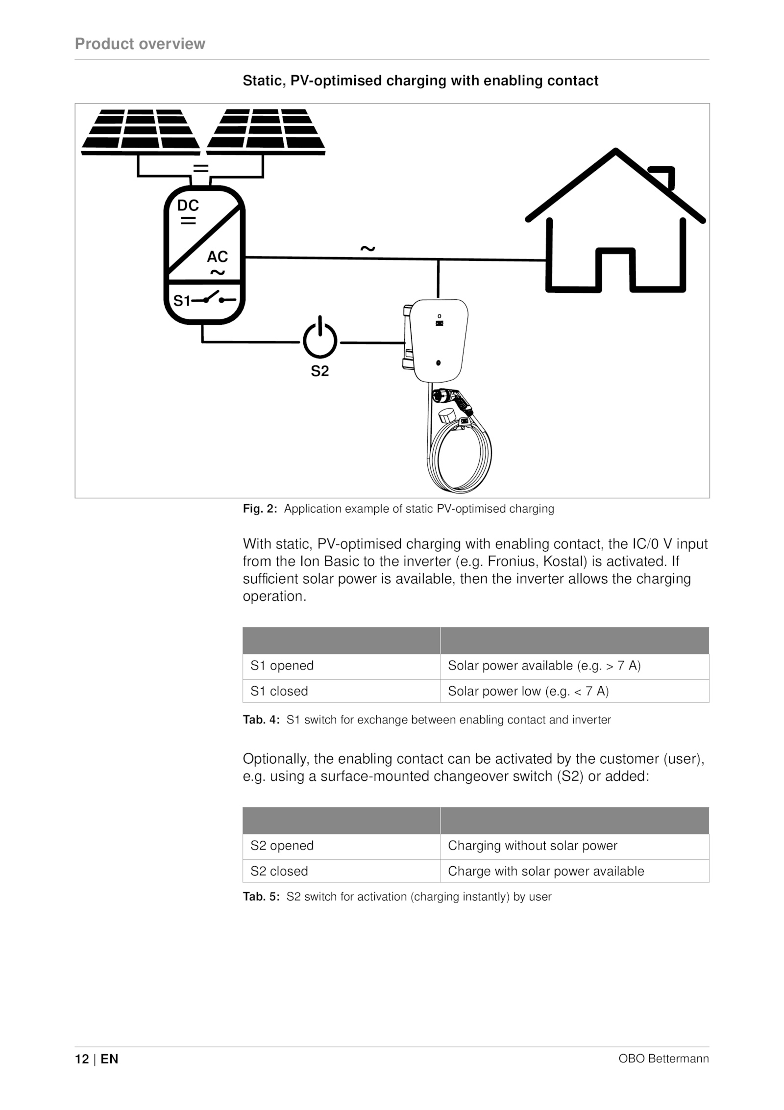S1 closed Solar power low (e.g. Application example static PV-optimised charging