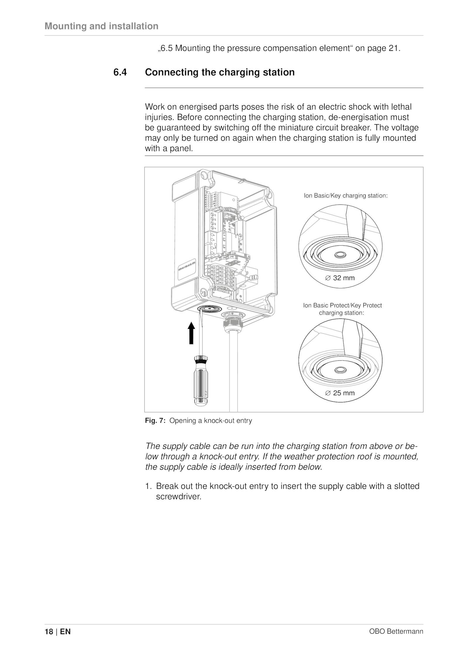 injuries. Before connecting the charging station, de-energisation must
