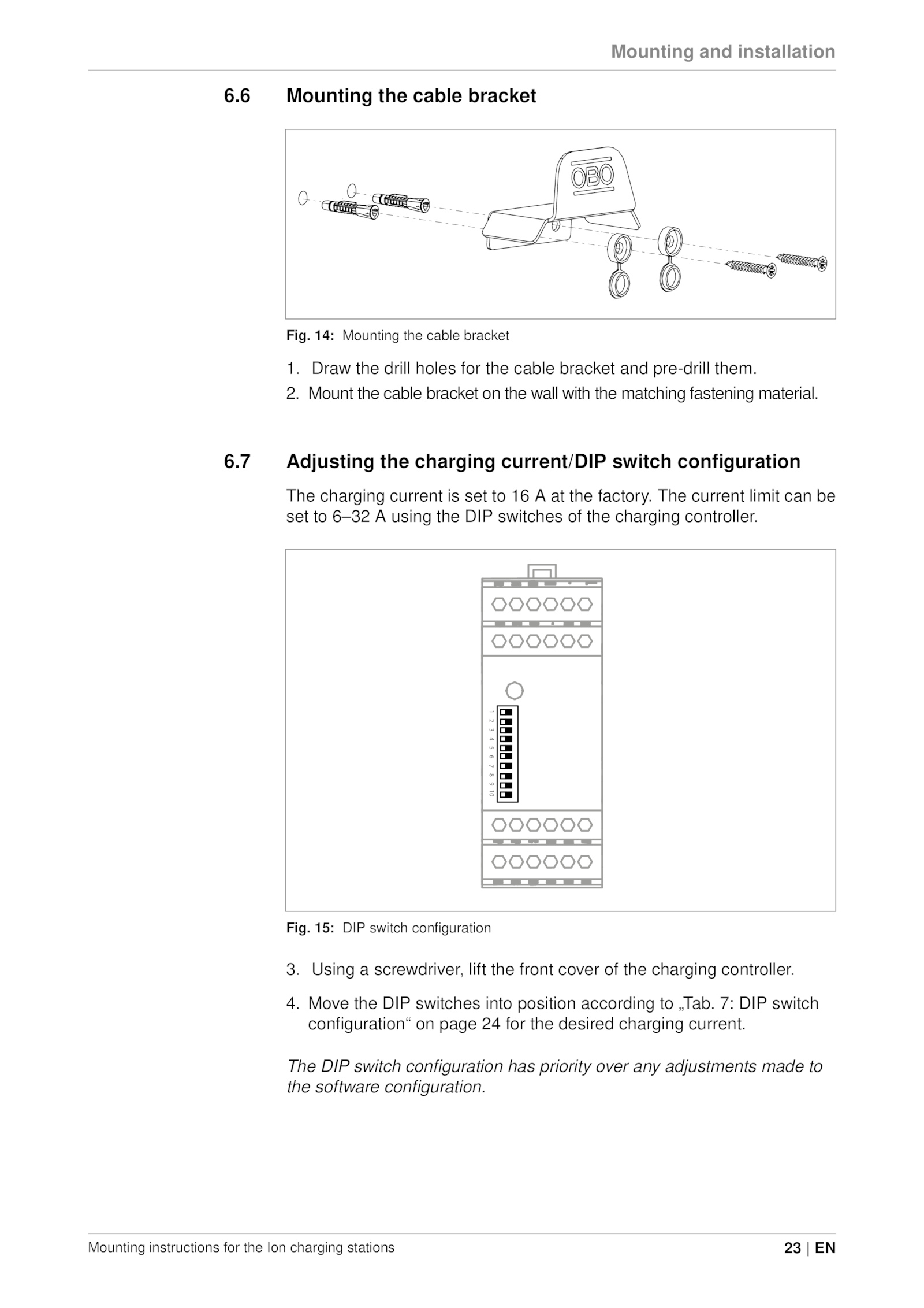 1.7 Adjusting the charging current/DIP switch configuration