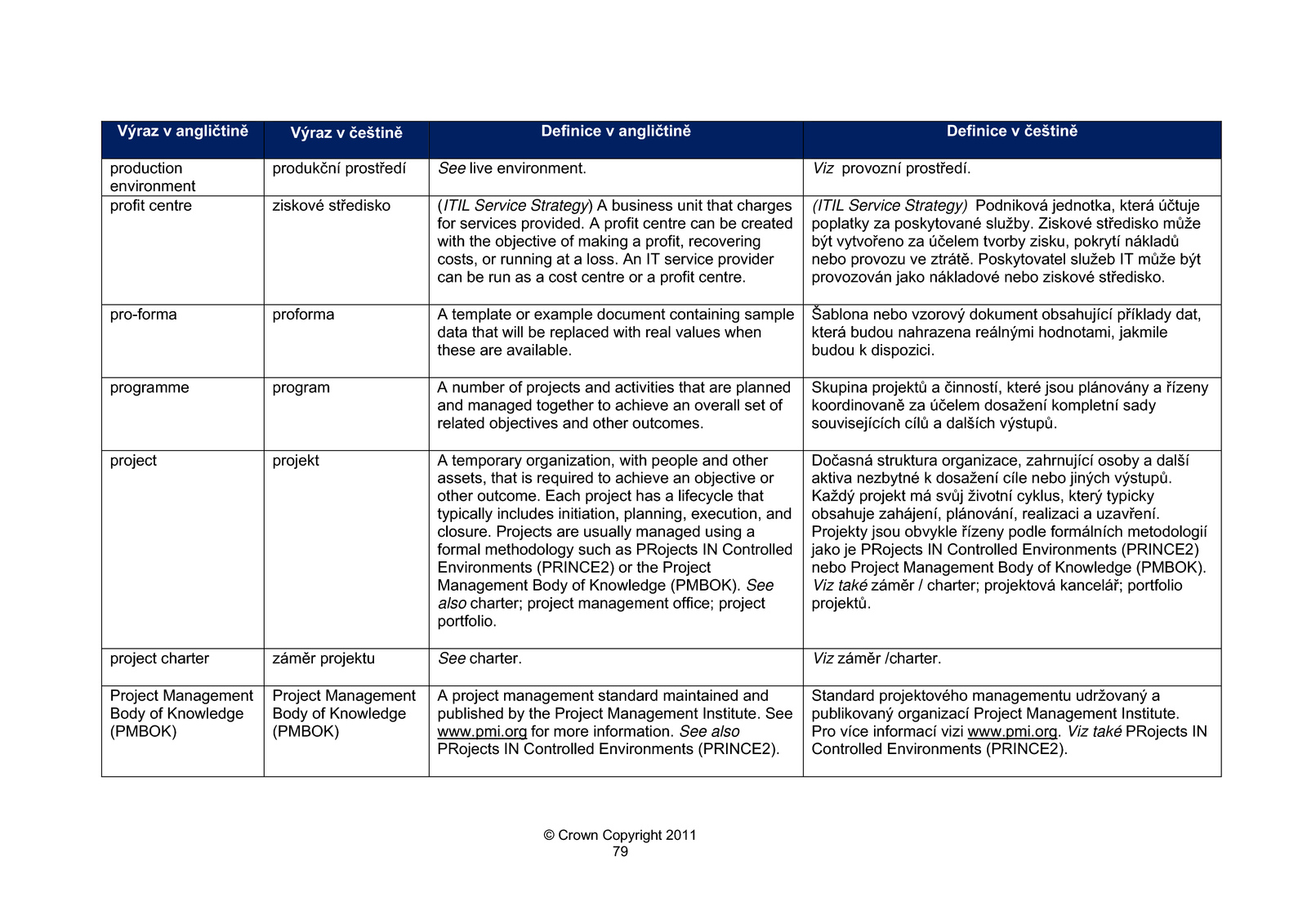 Ashleymu Hanna (HP), který jej aktualizoval v červenci 2011.Naše díky také patří všem, kdo přispěli ke klíčovým publikacím ITIL ve vydáních 2007 a 2011. Kompletní seznam autorů je uveden na: www.itilofficialsite.com/Publications/PublicationAcknowledgements.aspxJsme take velmi vděční Miroslavu Sedláčkovi za vedení projektu překladu výkladového slovníku do češtiny a následujícím expertům týmu prozajištění kvality:Jiřímu Hudcovi (itSMF CZ) – překlad změn, dodatků a formální úpravy textu, editaceVladimíru Kufnerovi (HP) – proofreading a odborné posouzení terminologie.Rovněž tak zmiňujeme pionýrskou práci týmu publikačního výboru itSMF Czech, jenž v roce 2008 vytvořil první kompletní překlad první verzevýkladového slovníku ITIL, a tak významně přispěl ke kodifikaci odborné terminologie ITIL v češtině.Na překladu a revizi se v letech 2007 a 2008 podíleliIvan Volný – vedoucí týmu překladatelůLenka Volná TichavskáLudmila VráželováTáňa SýkorováJaromír ŠveřepaAntonín SládekPetr NavrátilĽubomír LukáčJiří HudecŠtěpán JarochVladimír Kufner – odborná revize.