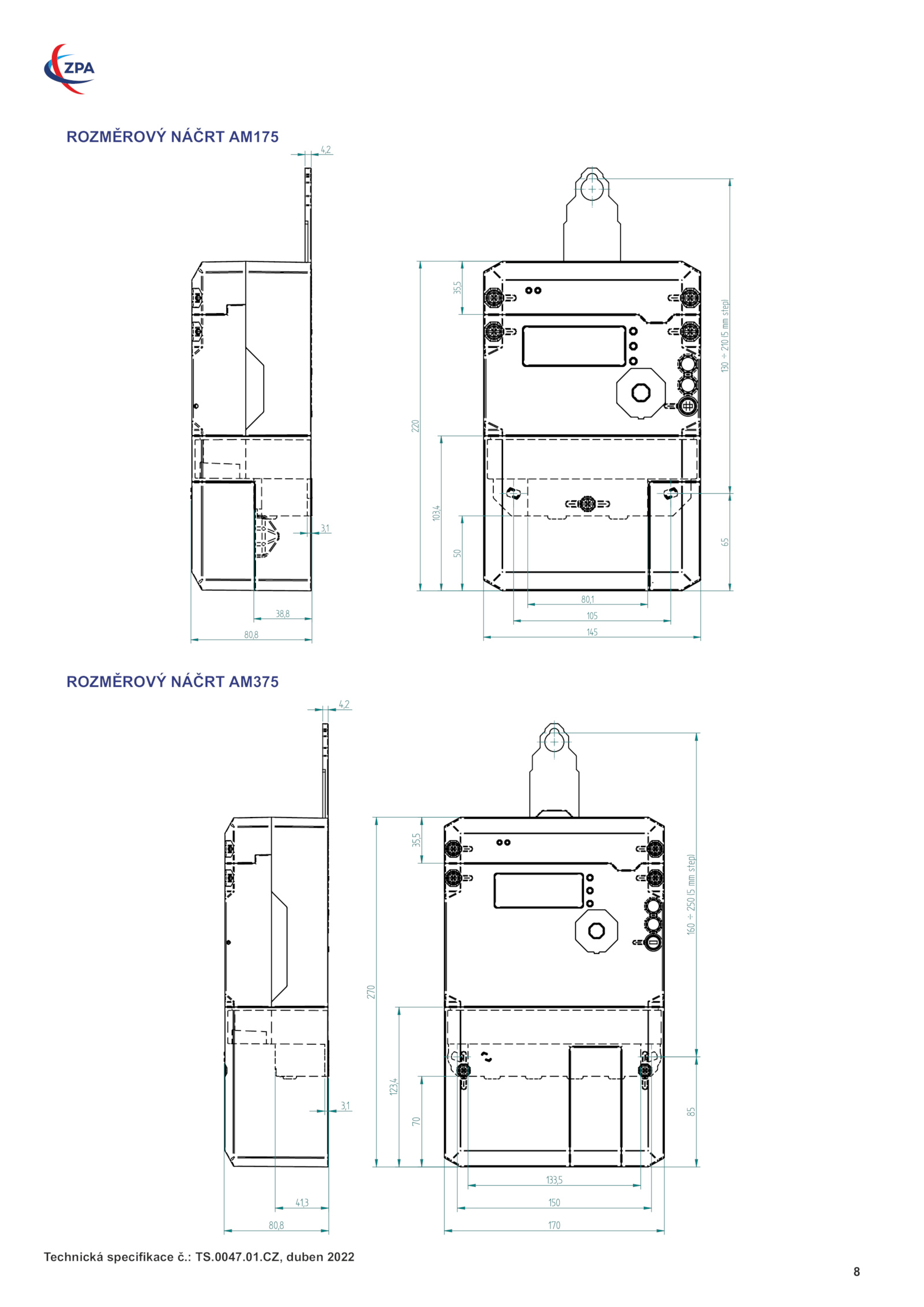 : TS.0047.01.CZ, duben 2022 .ROZMĚROVÝ NÁČRT AM175 ROZMĚROVÝ NÁČRT AM375 Technická specifikace č