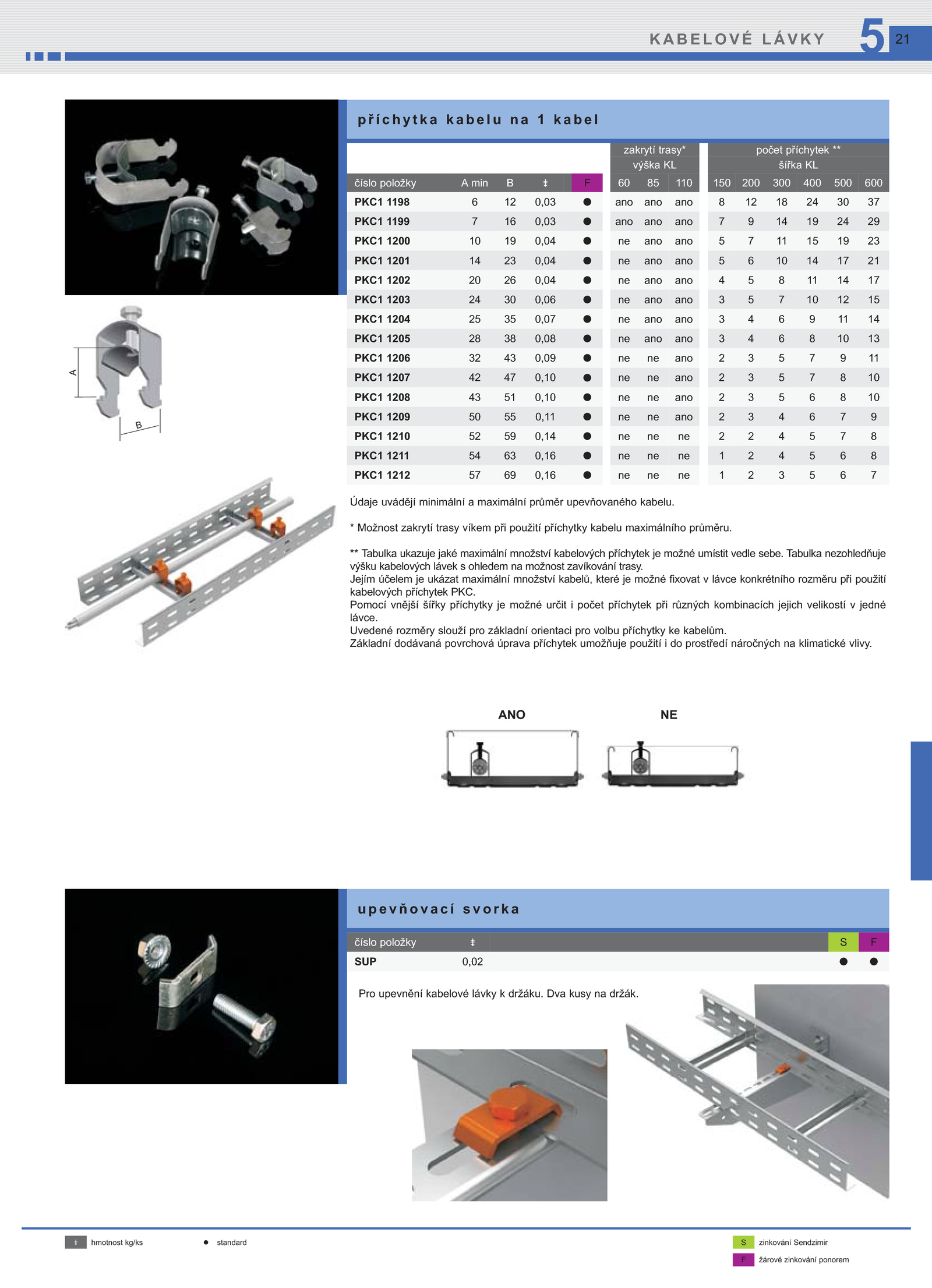 Údaje uvádějí minimální maximální průměr upevňovaného kabelu. Dva kusy držák. Tabulka nezohledňuje