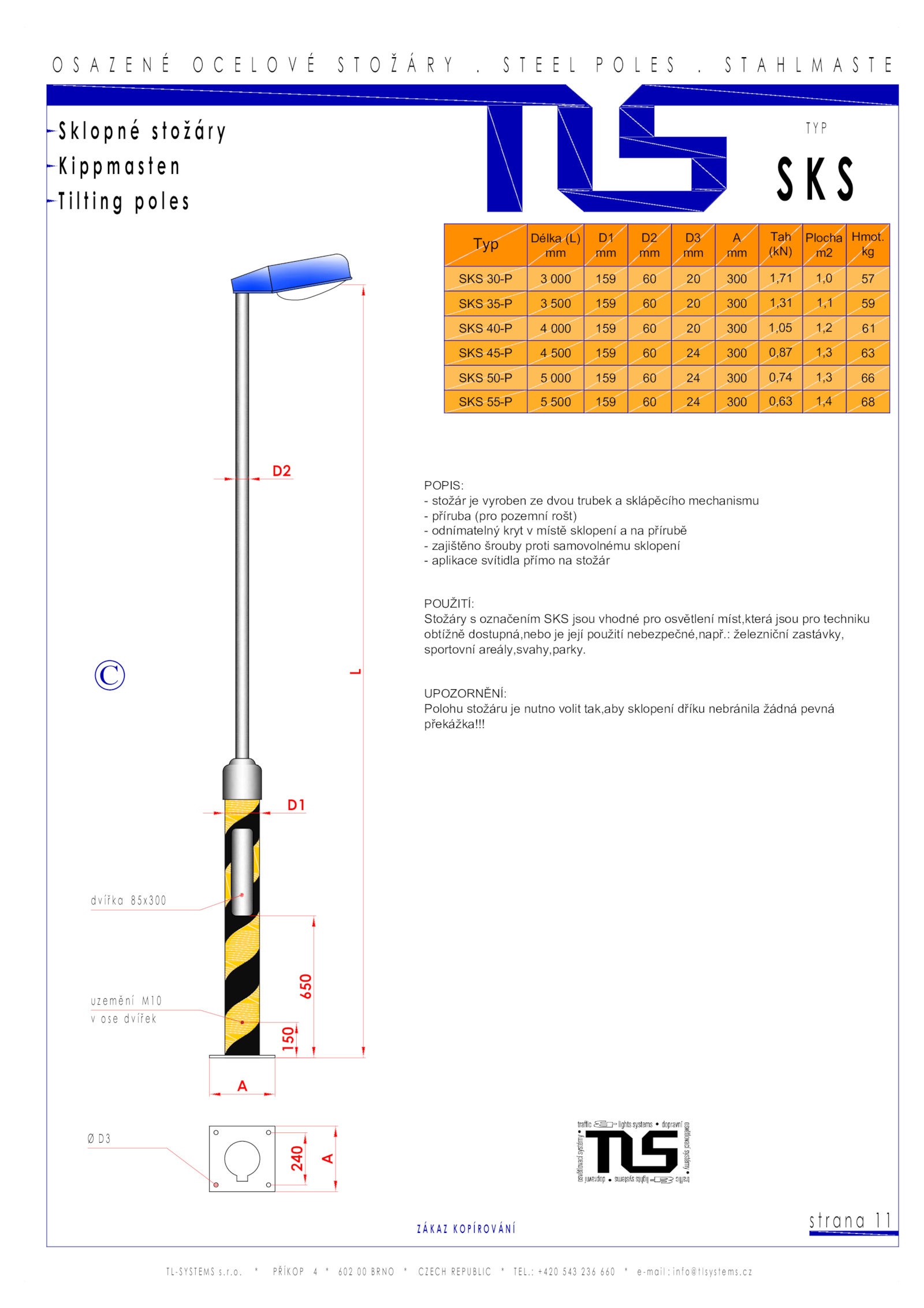 Stožáry označením SKS jsou vhodné pro osvětlení míst,která jsou pro techniku