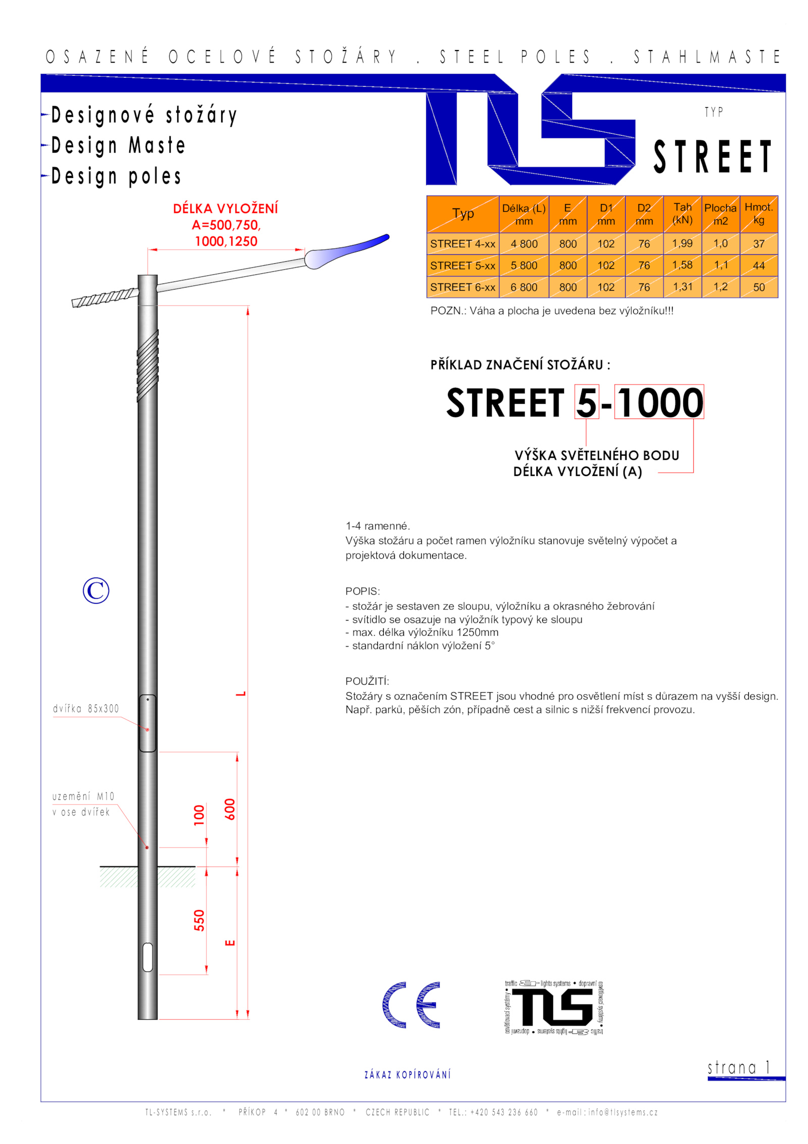 projektová dokumentace. parků, pěších zón, případně cest silnic nižší frekvencí provozu.: Váha plocha uvedena bez výložníku!!!