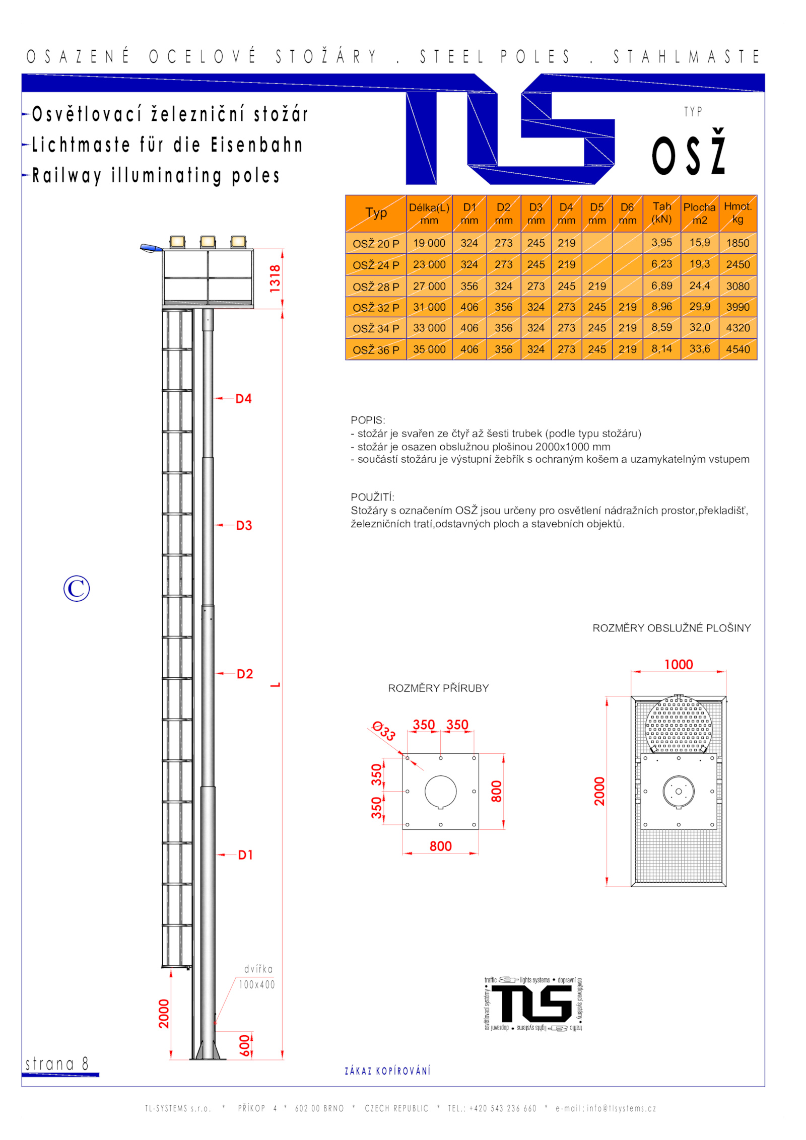 - stožár osazen obslužnou plošinou 2000x1000 mm