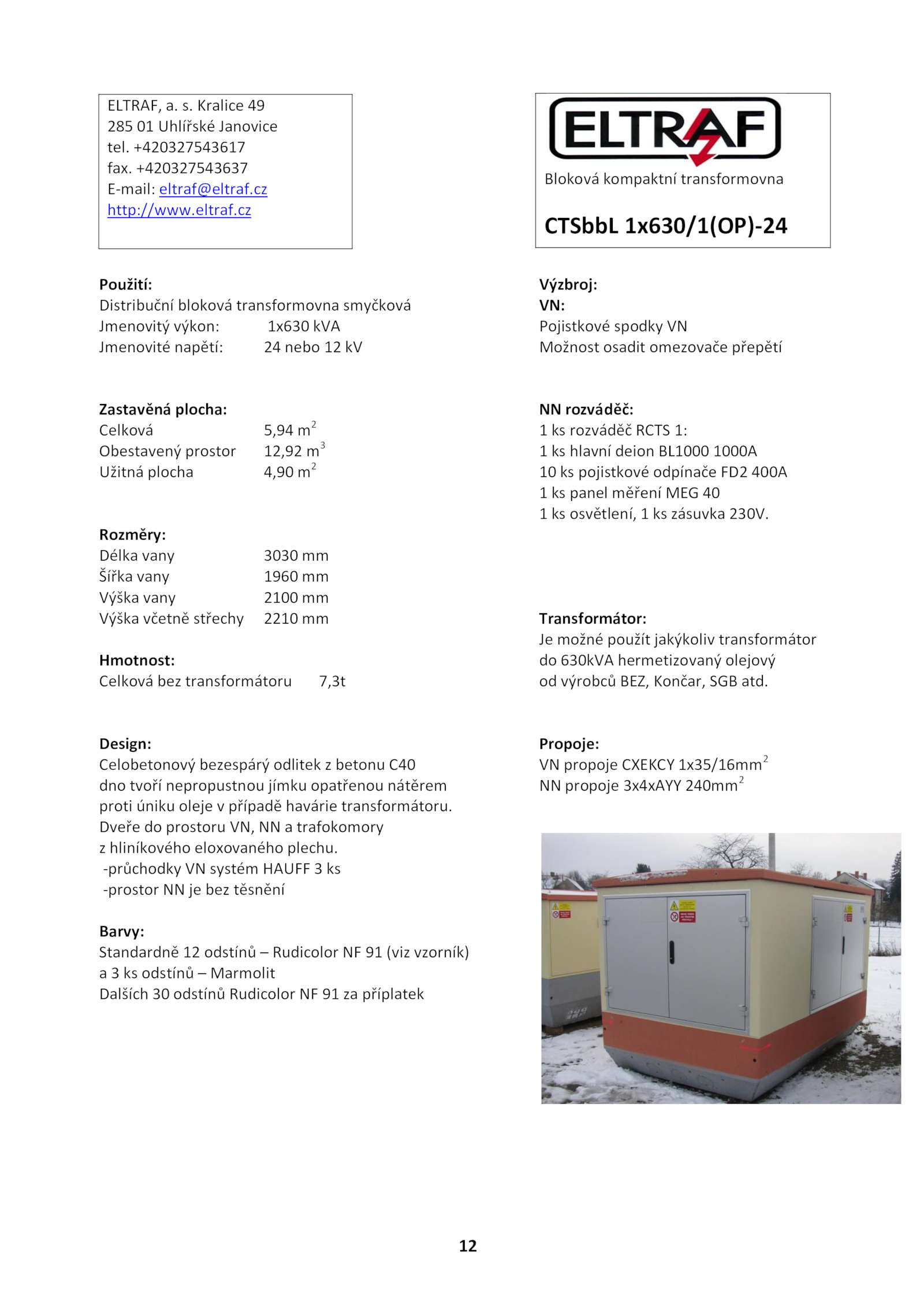 Jmenovitý výkon: 1x630 kVA Pojistkové spodky VN