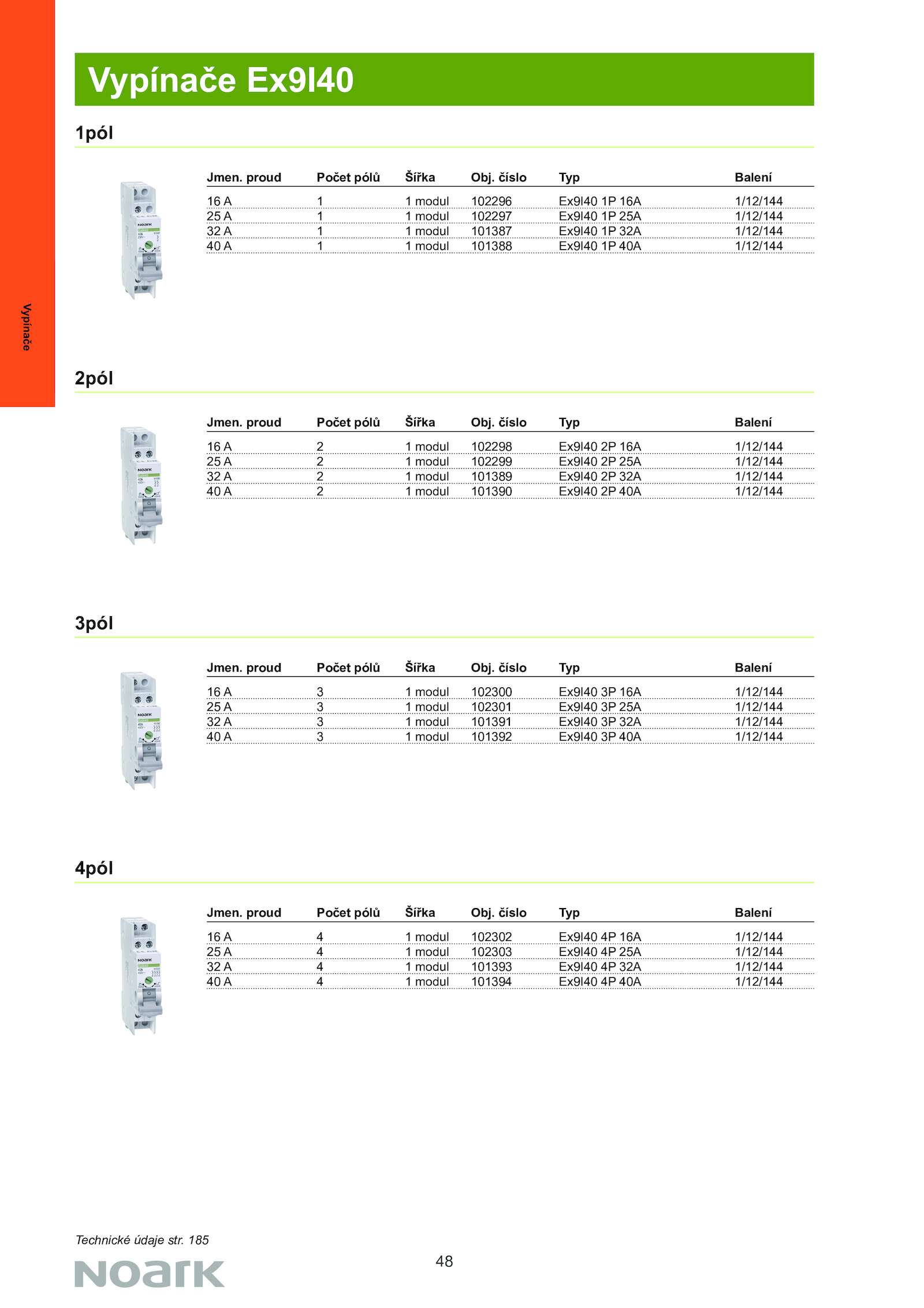Jmen. proud Počet pólů Šířka Obj. číslo Typ Balení