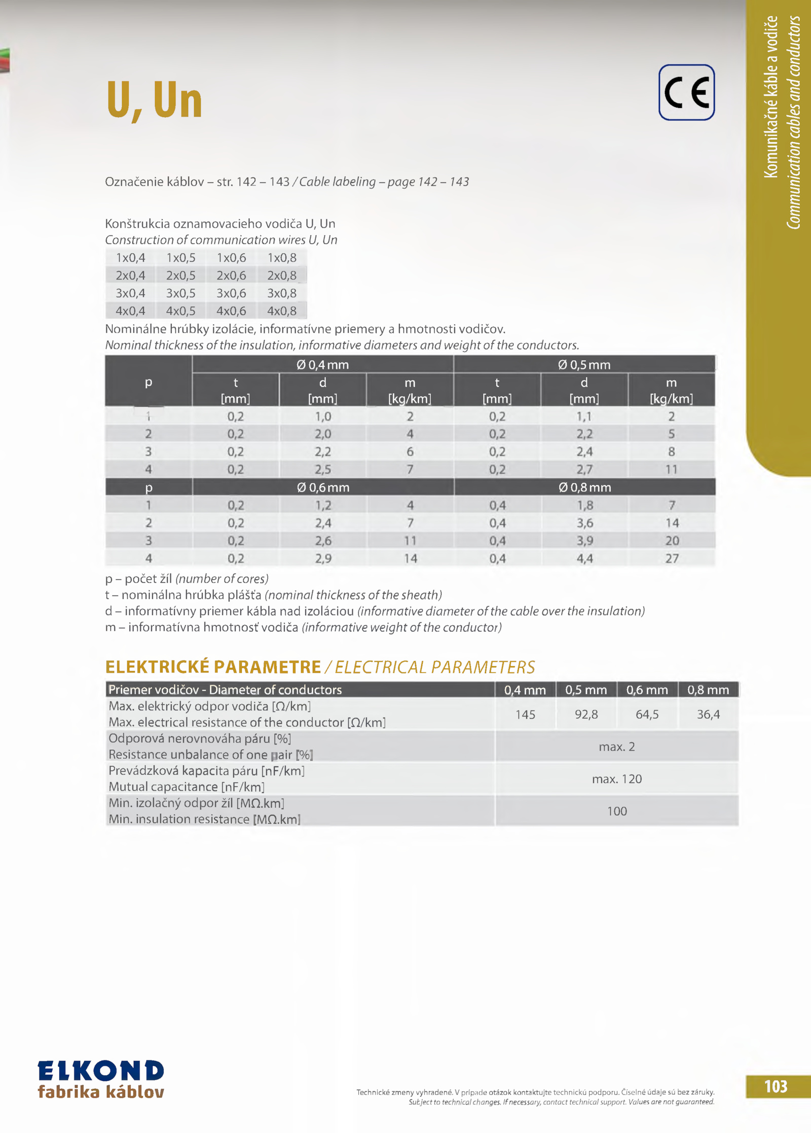 Nominálne hrúbky izolácie, informatívne priemery hmotnosti vodičov. Ifnecessary, contact technicalsupport. 120