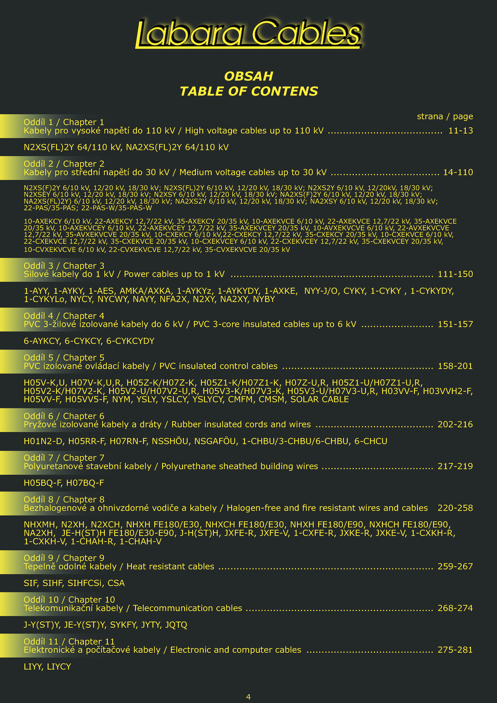 Kabely pro vysoké napětí 110 High voltage cables 110 ............................................................
