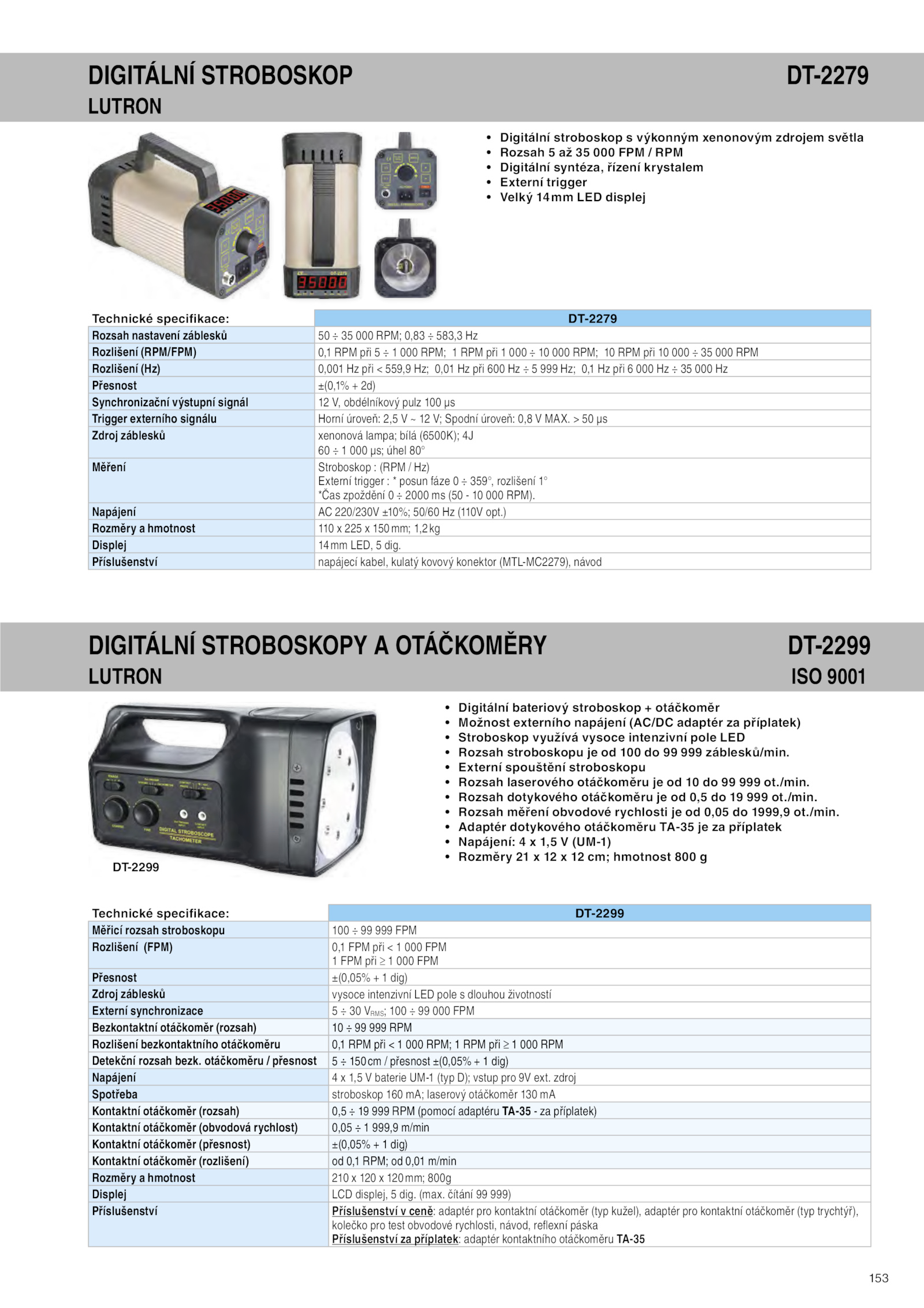 DIGITÁLNÍ STROBOSKOPY OTÁČKOMĚRY DT-2299