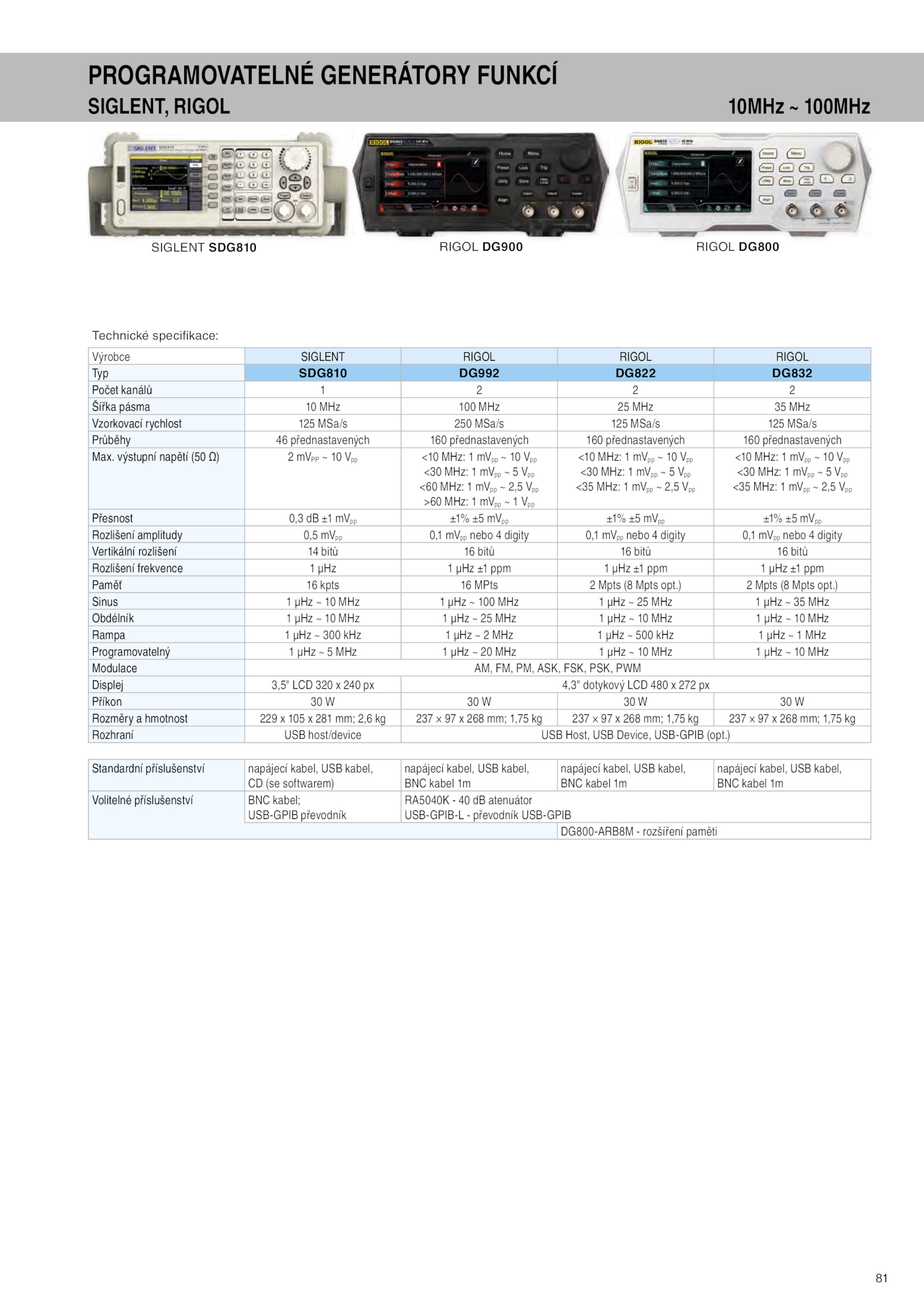 Rozhraní USB host/device USB Host, USB Device, USB-GPIB (opt.) Mpts Mpts opt.)