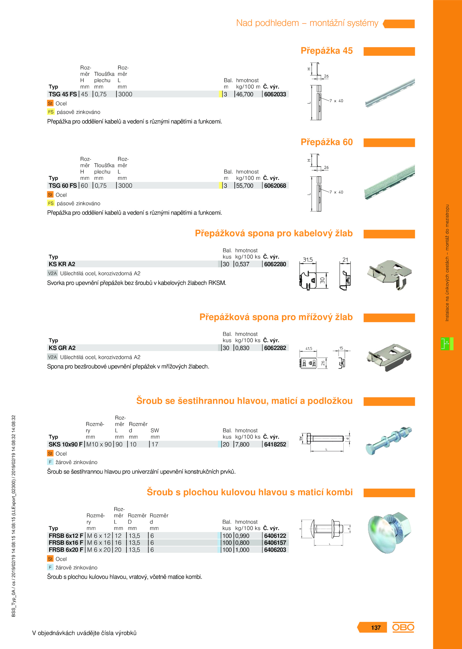 Spona pro bezšroubové upevnění přepážek mřížových žlabech.Přepážka 45