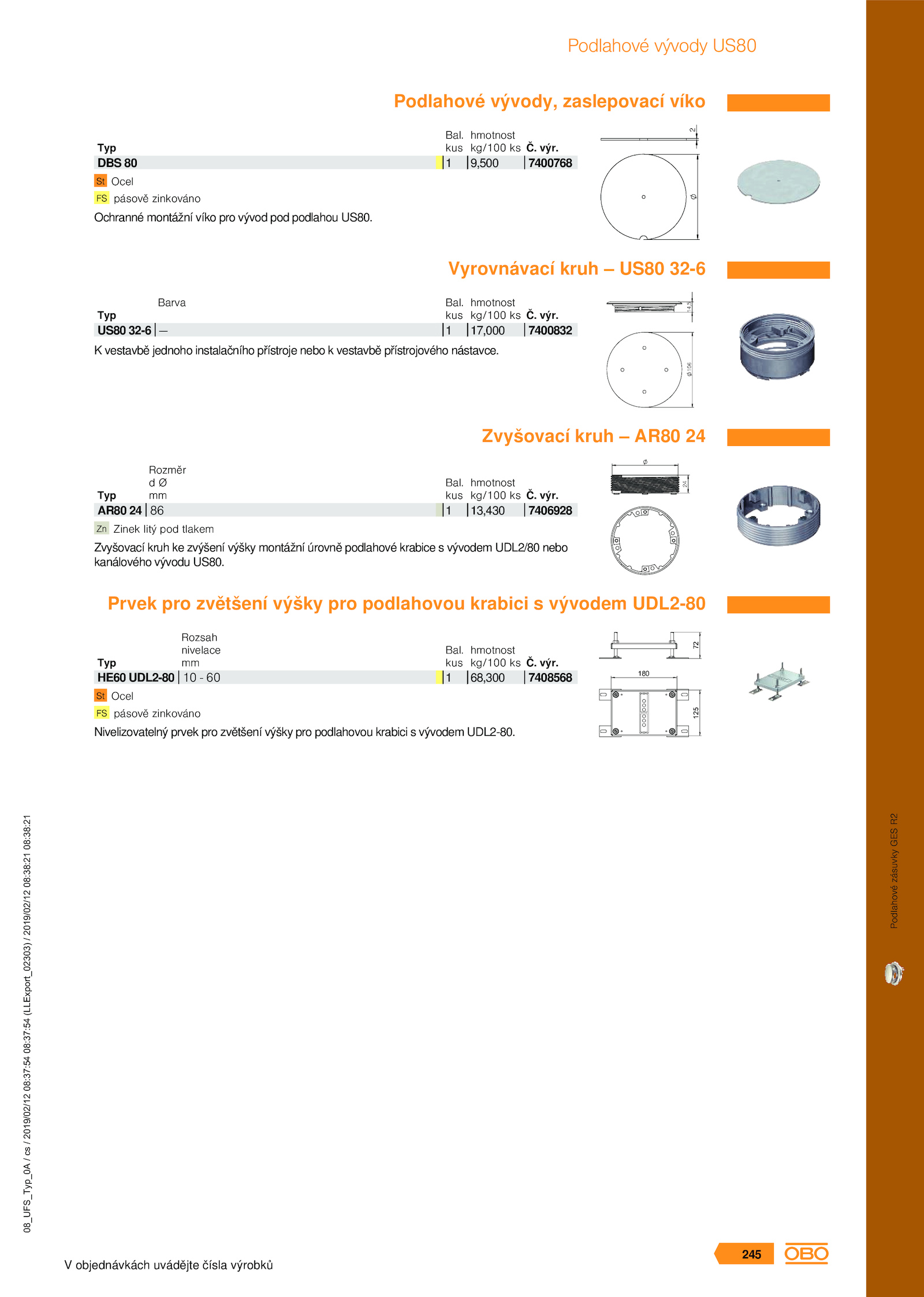 Ochranné montážní víko pro vývod pod podlahou US80. výr.