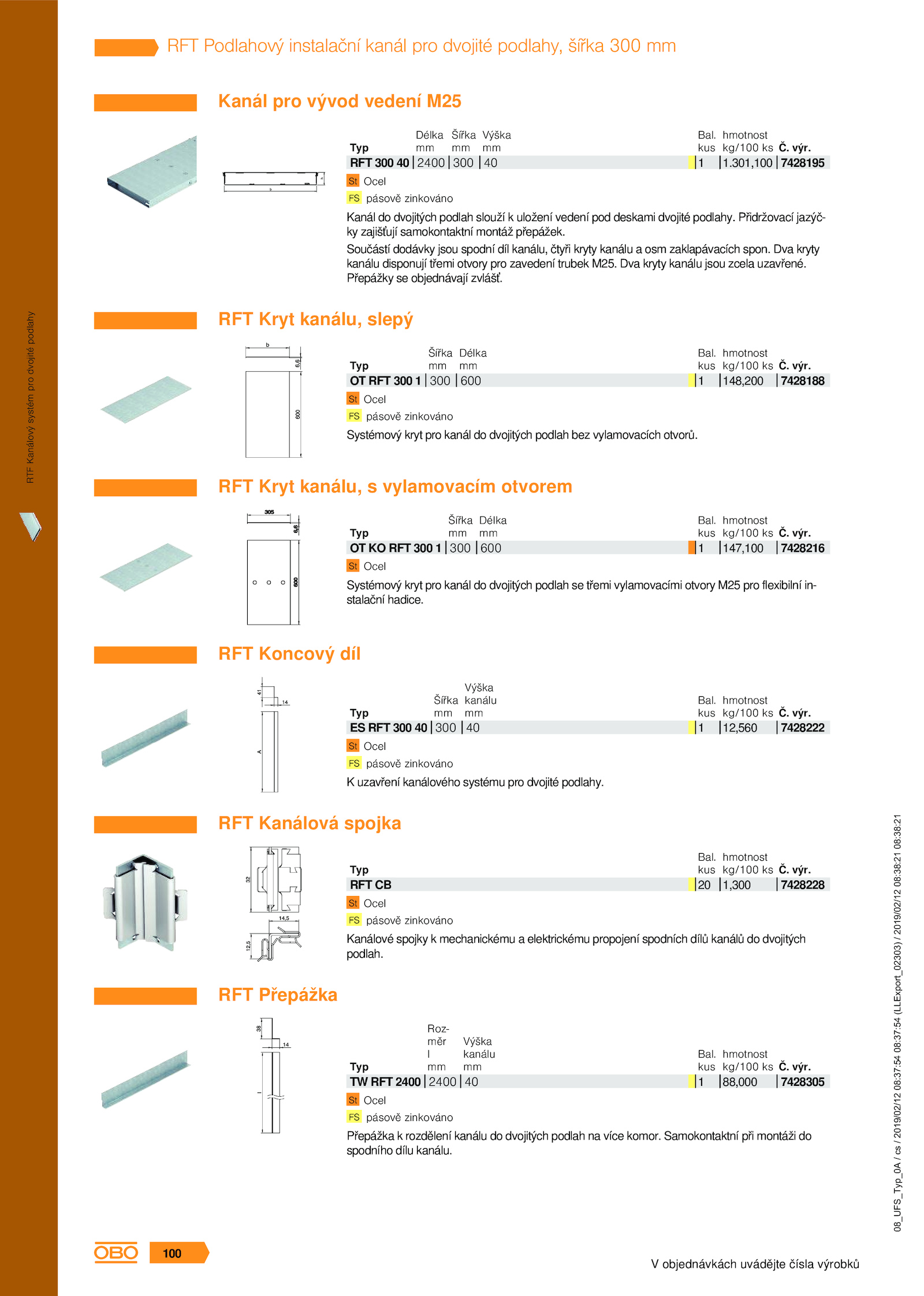 RFT Podlahový instalační kanál pro dvojité podlahy, šířka 300 mm