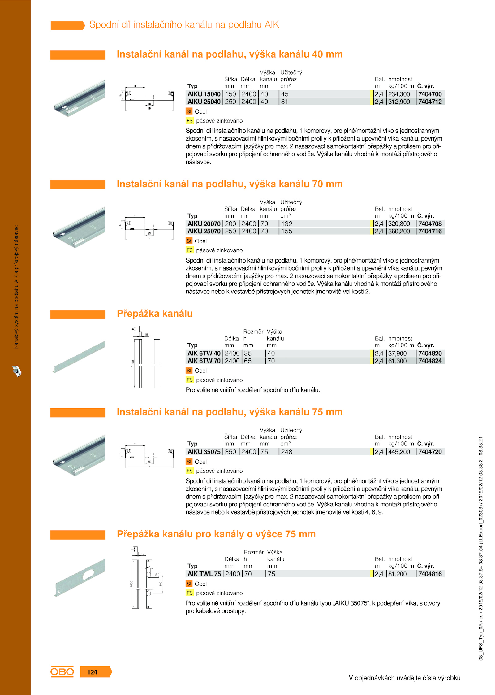 pro kabelové prostupy.Instalační kanál podlahu, výška kanálu mm