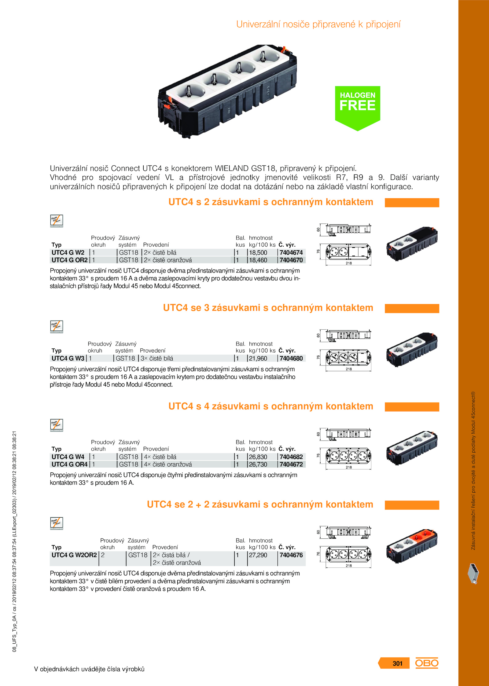 Propojený univerzální nosič UTC4 disponuje čtyřmi předinstalovanými zásuvkami ochranným