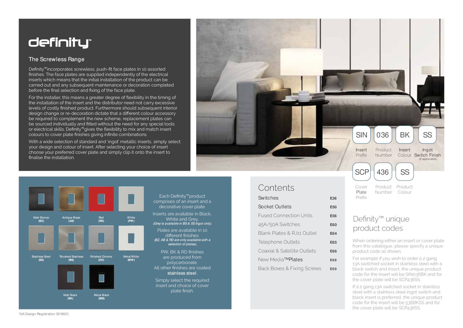 *UK Design Registration 3015621. ʼnåƖĎƊ΄åƂĎ΄åƵåijʼnåĀʼnĎ΄ijœ΄̆̅΄ ĈijǖĎƂĎœƖ΄ǙœijƊĮĎƊ͟ (BZ, are only available with a selection plates). Î͚΄_΄π΄$΄ǙœijƊĮĎƊ΄ åƂĎ΄ſƂŜĈƞāĎĈ΄ĦƂŜő΄ ſŜʼnƼāåƂĀŜœåƖĎ͟΄ ʼnʼn΄ŜƖĮĎƂ΄ǙœijƊĮĎƊ΄åƂĎ΄āŜåƖĎĈ΄ stainless steel. ¢ijőſʼnƼ΄ƊĎʼnĎāƖ΄ƖĮĎ΄ƂĎƁƞijƂĎĈ΄ ijœƊĎƂƖ΄åœĈ΄āĮŜijāĎ΄ŜĦ΄āŜƵĎƂ΄ ſʼnåƖĎ΄ǙœijƊĮ͟ $ĎǙœijƖƼυ΄ƞœijƁƞĎ΄ ſƂŜĈƞāƖ΄āŜĈĎƊ ÎĮĎœ΄ŜƂĈĎƂijœħ΄ĎijƖĮĎƂ΄åœ΄ijœƊĎƂƖ΄ŜƂ΄āŜƵĎƂ΄ſʼnåƖĎ΄ ĦƂŜő΄ƖĮijƊ΄āåƖåʼnŜħƞĎ͚΄ſʼnĎåƊĎ΄ƊſĎāijĦƼ΄å΄ƞœijƁƞĎ΄ ſƂŜĈƞāƖ΄āŜĈĎ΄åƊ΄ƊĮŜƶœ͟΄ AŜƂ΄ĎƻåőſʼnĎ΄ijĦ΄ƼŜƞ΄ƶijƊĮ΄ƖŜ΄ŜƂĈĎƂ΄å΄̇΄ħåœħ΄ ̆̈΄ƊƶijƖāĮĎĈ΄ƊŜāņĎƖ΄ijœ΄ƊƖåijœʼnĎƊƊ΄ƊƖĎĎʼn΄ƶijƖĮ΄å΄ Āʼnåāņ΄ƊƶijƖāĮ΄åœĈ΄ijœƊĎƂƖ͚΄ƖĮĎ΄ƞœijƁƞĎ΄ſƂŜĈƞāƖ΄ āŜĈĎ΄ĦŜƂ΄ƖĮĎ΄ijœƊĎƂƖ΄ƶijʼnʼn΄ĀĎ΄¢Nk̅̈̋_΄åœĈ΄ĦŜƂ΄ ƖĮĎ΄āŜƵĎƂ΄ſʼnåƖĎ΄ƶijʼnʼn΄ĀĎ΄¢̉̈̋¢¢͟΄ NĦ΄å΄̇΄ħåœħ΄̆̈΄ƊƶijƖāĮĎĈ΄ƊŜāņĎƖ΄ijœ΄ƊƖåijœʼnĎƊƊ΄ ƊƖĎĎʼn΄ƶijƖĮ΄å΄ƊƖåijœʼnĎƊƊ΄ƊƖĎĎʼn΄ijœħŜƖ΄ƊƶijƖāĮ΄åœĈ΄ Āʼnåāņ΄ijœƊĎƂƖ΄ijƊ΄ſƂĎĦĎƂƂĎĈ͚΄ƖĮĎ΄ƞœijƁƞĎ΄ſƂŜĈƞāƖ΄ āŜĈĎ΄ĦŜƂ΄ƖĮĎ΄ijœƊĎƂƖ΄ƶijʼnʼn΄ĀĎ΄̊̈̋_¢¢΄åœĈ΄ĦŜƂ΄ ƖĮĎ΄āŜƵĎƂ΄ſʼnåƖĎ΄ƶijʼnʼn΄ĀĎ΄¢̉̈̋¢¢͟ Insert ƂĎǙƻ ŜƵĎƂ΄ Plate ƂĎǙƻ ƂŜĈƞāƖ΄ kƞőĀĎƂ ƂŜĈƞāƖ kƞőĀĎƂ Insert ŜʼnŜƞƂ ƂŜĈƞāƖ΄ ŜʼnŜƞƂ Ingot Switch Finish (if applicable) SIN SCP 036 436 BK SS SS Antique Brass (AB) Red (RD) White (PW) Stainless Steel (SS) *Brushed Stainless (BS) Polished Chrome (CH) Matt Black (BK) Metal White (MW) Metal Black (MB) Matt Bronze (BZ) ŜœƖĎœƖƊ Switches E36 Socket Outlets E50 AƞƊĎĈ΄ŜœœĎāƖijŜœ΄¶œijƖƊ E56 ̉̊ͥ̊̅΄¢ƶijƖāĮĎƊ E60 ʼnåœņ΄ʼnåƖĎƊ΄π΄]̆̆΄tƞƖʼnĎƖ E64 ¯ĎʼnĎſĮŜœĎ΄tƞƖʼnĎƖƊ E65 Ŝåƻijåʼn΄π΄¢åƖĎʼnʼnijƖĎ΄tƞƖʼnĎƖƊ E66 kĎƶ΄iĎĈijå™ Plates E68 åāņ΄ŜƻĎƊ΄π΄Aijƻijœħ΄¢āƂĎƶƊ E69 . $ĎǙœijƖƼ™ ΄ijœāŜƂſŜƂåƖĎƊ΄ƊāƂĎƶʼnĎƊƊ͚΄ſƞƊĮͲǙƖ΄ĦåāĎ΄ſʼnåƖĎƊ΄ijœ΄̆̅΄åƊƊŜƂƖĎĈ΄ ǙœijƊĮĎƊ͟΄¯ĮĎ΄ĦåāĎ΄ſʼnåƖĎƊ΄åƂĎ΄ƊƞſſʼnijĎĈ΄ijœĈĎſĎœĈĎœƖʼnƼ΄ŜĦ΄ƖĮĎ΄ĎʼnĎāƖƂijāåʼn΄ ijœƊĎƂƖƊ΄ƶĮijāĮ΄őĎåœƊ΄ƖĮåƖ΄ƖĮĎ΄ijœijƖijåʼn΄ijœƊƖåʼnʼnåƖijŜœ΄ŜĦ΄ƖĮĎ΄ſƂŜĈƞāƖ΄āåœ΄ĀĎ΄ āåƂƂijĎĈ΄ŜƞƖ΄åœĈ΄åœƼ΄ƊƞĀƊĎƁƞĎœƖ΄őåijœƖĎœåœāĎ΄ŜƂ΄ĈĎāŜƂåƖijŜœ΄āŜőſʼnĎƖĎĈ΄ ĀĎĦŜƂĎ΄ƖĮĎ΄Ǚœåʼn΄ƊĎʼnĎāƖijŜœ΄åœĈ΄Ǚƻijœħ΄ŜĦ΄ƖĮĎ΄ĦåāĎ΄ſʼnåƖĎ͟΄΄ AŜƂ΄ƖĮĎ΄ijœƊƖåʼnʼnĎƂ͚΄ƖĮijƊ΄őĎåœƊ΄å΄ħƂĎåƖĎƂ΄ĈĎħƂĎĎ΄ŜĦ΄ǚĎƻijĀijʼnijƖƼ΄ijœ΄ƖĮĎ΄Ɩijőijœħ΄ŜĦ΄ ƖĮĎ΄ijœƊƖåʼnʼnåƖijŜœ΄ŜĦ΄ƖĮĎ΄ijœƊĎƂƖ΄åœĈ΄ƖĮĎ΄ĈijƊƖƂijĀƞƖŜƂ΄œĎĎĈ΄œŜƖ΄āåƂƂƼ΄ĎƻāĎƊƊijƵĎ΄ ʼnĎƵĎʼnƊ΄ŜĦ΄āŜƊƖʼnƼ΄ǙœijƊĮĎĈ΄ſƂŜĈƞāƖ͟΄AƞƂƖĮĎƂőŜƂĎ΄ƊĮŜƞʼnĈ΄ƊƞĀƊĎƁƞĎœƖ΄ijœƖĎƂijŜƂ΄ ĈĎƊijħœ΄āĮåœħĎ΄ŜƂ΄ƂĎͲĈĎāŜƂåƖijŜœ΄ĈijāƖåƖĎ΄ƖĮåƖ΄å΄ĈijǖĎƂĎœƖ΄āŜʼnŜƞƂ΄åāāĎƊƊŜƂƼ΄ ĀĎ΄ƂĎƁƞijƂĎĈ΄ƖŜ΄āŜőſʼnĎőĎœƖ΄ƖĮĎ΄œĎƶ΄ƊāĮĎőĎ͚΄ƂĎſʼnåāĎőĎœƖ΄ſʼnåƖĎƊ΄āåœ΄ ĀĎ΄ƊŜƞƂāĎĈ΄ijœĈijƵijĈƞåʼnʼnƼ΄åœĈ΄ǙƖƖĎĈ΄ƶijƖĮŜƞƖ΄ƖĮĎ΄œĎĎĈ΄ĦŜƂ΄åœƼ΄ƊſĎāijåʼn΄ƖŜŜʼnƊ΄ ŜƂ΄ĎʼnĎāƖƂijāåʼn΄ƊņijʼnʼnƊ͟΄$ĎǙœijƖƼ™ ΄ħijƵĎƊ΄ƖĮĎ΄ǚĎƻijĀijʼnijƖƼ΄ƖŜ΄őijƻ΄åœĈ΄őåƖāĮ΄ijœƊĎƂƖ΄ āŜʼnŜƞƂƊ΄ƖŜ΄āŜƵĎƂ΄ſʼnåƖĎ΄ǙœijƊĮĎƊ΄ħijƵijœħ΄ijœǙœijƖĎ΄āŜőĀijœåƖijŜœƊ͟΄ ÎijƖĮ΄å΄ƶijĈĎ΄ƊĎʼnĎāƖijŜœ΄ŜĦ΄ƊƖåœĈåƂĈ΄åœĈ΄ͼijœħŜƖͽ΄őĎƖåʼnʼnijā΄ijœƊĎƂƖƊ͚΄ƊijőſʼnƼ΄ƊĎʼnĎāƖ΄ ƼŜƞƂ΄ĈĎƊijħœ΄åœĈ΄āŜʼnŜƞƂ΄ŜĦ΄ijœƊĎƂƖ͟΄ĦƖĎƂ΄ƊĎʼnĎāƖijœħ΄ƼŜƞƂ΄āĮŜijāĎ΄ŜĦ΄ijœƊĎƂƖ΄ āĮŜŜƊĎ΄ƼŜƞƂ΄ſƂĎĦĎƂƂĎĈ΄āŜƵĎƂ΄ſʼnåƖĎ΄åœĈ΄ƊijőſʼnƼ΄āʼnijſ΄ijƖ΄ŜœƖŜ΄ƖĮĎ΄ijœƊĎƂƖ΄ƖŜ΄ ǙœåʼnijƊĎ΄ƖĮĎ΄ijœƊƖåʼnʼnåƖijŜœ͟΄ The Screwless Range *åāĮ΄$ĎǙœijƖƼ™ ΄ſƂŜĈƞāƖ΄ āŜőſƂijƊĎƊ΄ŜĦ΄åœ΄ijœƊĎƂƖ΄åœĈ΄å΄ ĈĎāŜƂåƖijƵĎ΄āŜƵĎƂ΄ſʼnåƖĎ͟΄ NœƊĎƂƖƊ΄åƂĎ΄åƵåijʼnåĀʼnĎ΄ijœ΄ʼnåāņ͚΄ ÎĮijƖĎ΄åœĈ΄BƂĎƼ͚ (Grey available Ingot only)