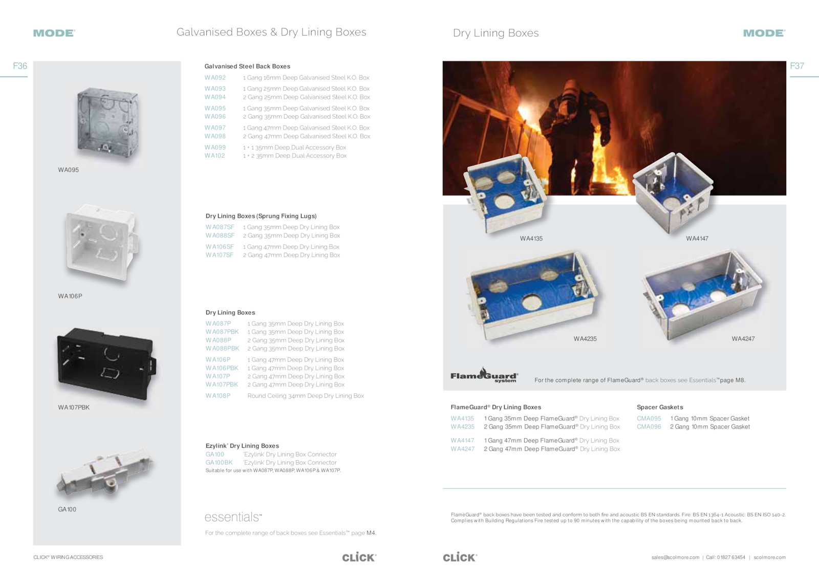 FlameGuard® Dry Lining Boxes WA4135 Gang 35mm Deep FlameGuard® ΄$ƂƼ΄aijœijœħ΄Ŝƻ WA4235 Gang 35mm Deep FlameGuard® ΄$ƂƼ΄aijœijœħ΄Ŝƻ WA4147 Gang 47mm Deep FlameGuard® ΄$ƂƼ΄aijœijœħ΄Ŝƻ WA4247 Gang 47mm Deep FlameGuard® ΄$ƂƼ΄aijœijœħ΄Ŝƻ For the complete range FlameGuard® ΄Āåāņ΄ĀŜƻĎƊ΄ƊĎĎ΄*ƊƊĎœƖijåʼnƊ™ page M8.com Call: 01827 63454 scolmore. WA4135 WA4147 WA4235 FlameGuard® ΄Āåāņ΄ĀŜƻĎƊ΄ĮåƵĎ΄ĀĎĎœ΄ƖĎƊƖĎĈ΄åœĈ΄āŜœĦŜƂő΄ƖŜ΄ĀŜƖĮ΄ǙƂĎ΄åœĈ΄åāŜƞƊƖijā΄¢΄*k΄ƊƖåœĈåƂĈƊ͟΄AijƂĎ͙΄¢΄*k΄̆̈̋̉Ͳ̆΄āŜƞƊƖijā͙΄¢΄*k΄N¢t΄̆̉̅Ͳ̇͟΄ Complies with Building Regulations Fire tested minutes with the capability the boxes being mounted back back.sales@scolmore. Spacer Gaskets CMA095 Gang 10mm Spacer Gasket CMA096 Gang 10mm Spacer Gasket WA4247 Galvanised Steel Back Boxes WA092 ̆΄Båœħ΄̆̋őő΄$ĎĎſ΄BåʼnƵåœijƊĎĈ΄¢ƖĎĎʼn΄_͟t͟΄Ŝƻ WA093 ̆΄Båœħ΄̇̊őő΄$ĎĎſ΄BåʼnƵåœijƊĎĈ΄¢ƖĎĎʼn΄_͟t͟΄Ŝƻ WA094 ̇΄Båœħ΄̇̊őő΄$ĎĎſ΄BåʼnƵåœijƊĎĈ΄¢ƖĎĎʼn΄_͟t͟΄Ŝƻ WA095 ̆΄Båœħ΄̈̊őő΄$ĎĎſ΄BåʼnƵåœijƊĎĈ΄¢ƖĎĎʼn΄_͟t͟΄Ŝƻ WA096 ̇΄Båœħ΄̈̊őő΄$ĎĎſ΄BåʼnƵåœijƊĎĈ΄¢ƖĎĎʼn΄_͟t͟΄Ŝƻ WA097 ̆΄Båœħ΄̉̌őő΄$ĎĎſ΄BåʼnƵåœijƊĎĈ΄¢ƖĎĎʼn΄_͟t͟΄Ŝƻ WA098 ̇΄Båœħ΄̉̌őő΄$ĎĎſ΄BåʼnƵåœijƊĎĈ΄¢ƖĎĎʼn΄_͟t͟΄Ŝƻ WA099 ̆΄Τ΄̆΄̈̊őő΄$ĎĎſ΄$ƞåʼn΄āāĎƊƊŜƂƼ΄Ŝƻ WA102 ̆΄Τ΄̇΄̈̊őő΄$ĎĎſ΄$ƞåʼn΄āāĎƊƊŜƂƼ΄Ŝƻ . WA106P GA100 WA107PBK Dry Lining Boxes (Sprung Fixing Lugs) WA087SF ̆΄Båœħ΄̈̊őő΄$ĎĎſ΄$ƂƼ΄aijœijœħ΄Ŝƻ WA088SF ̇΄Båœħ΄̈̊őő΄$ĎĎſ΄$ƂƼ΄aijœijœħ΄Ŝƻ WA106SF ̆΄Båœħ΄̉̌őő΄$ĎĎſ΄$ƂƼ΄aijœijœħ΄Ŝƻ WA107SF ̇΄Båœħ΄̉̌őő΄$ĎĎſ΄$ƂƼ΄aijœijœħ΄Ŝƻ Ezylink’ Dry Lining Boxes GA100 ͼ*džƼʼnijœņͽ΄$ƂƼ΄aijœijœħ΄Ŝƻ΄ŜœœĎāƖŜƂ GA100BK ͼ*džƼʼnijœņͽ΄$ƂƼ΄aijœijœħ΄Ŝƻ΄ŜœœĎāƖŜƂ Suitable for use with WA087P, WA088P, WA106P WA107P.com CLICK® WIRING ACCESSORIES F37 F36 BåʼnƵåœijƊĎĈ΄ŜƻĎƊ΄π΄$ƂƼ΄aijœijœħ΄ŜƻĎƊ $ƂƼ΄aijœijœħ΄ŜƻĎƊ WA095 Dry Lining Boxes WA087P ̆΄Båœħ΄̈̊őő΄$ĎĎſ΄$ƂƼ΄aijœijœħ΄Ŝƻ WA087PBK ̆΄Båœħ΄̈̊őő΄$ĎĎſ΄$ƂƼ΄aijœijœħ΄Ŝƻ WA088P ̇΄Båœħ΄̈̊őő΄$ĎĎſ΄$ƂƼ΄aijœijœħ΄Ŝƻ WA088PBK ̇΄Båœħ΄̈̊őő΄$ĎĎſ΄$ƂƼ΄aijœijœħ΄Ŝƻ WA106P ̆΄Båœħ΄̉̌őő΄$ĎĎſ΄$ƂƼ΄aijœijœħ΄Ŝƻ WA106PBK ̆΄Båœħ΄̉̌őő΄$ĎĎſ΄$ƂƼ΄aijœijœħ΄Ŝƻ WA107P ̇΄Båœħ΄̉̌őő΄$ĎĎſ΄$ƂƼ΄aijœijœħ΄Ŝƻ WA107PBK ̇΄Båœħ΄̉̌őő΄$ĎĎſ΄$ƂƼ΄aijœijœħ΄Ŝƻ WA108P ŜƞœĈ΄Ďijʼnijœħ΄̈̉őő΄$ĎĎſ΄$ƂƼ΄aijœijœħ΄Ŝƻ AŜƂ΄ƖĮĎ΄āŜőſʼnĎƖĎ΄ƂåœħĎ΄ŜĦ΄Āåāņ΄ĀŜƻĎƊ΄ƊĎĎ΄*ƊƊĎœƖijåʼnƊυ΄ſåħĎ΄M4