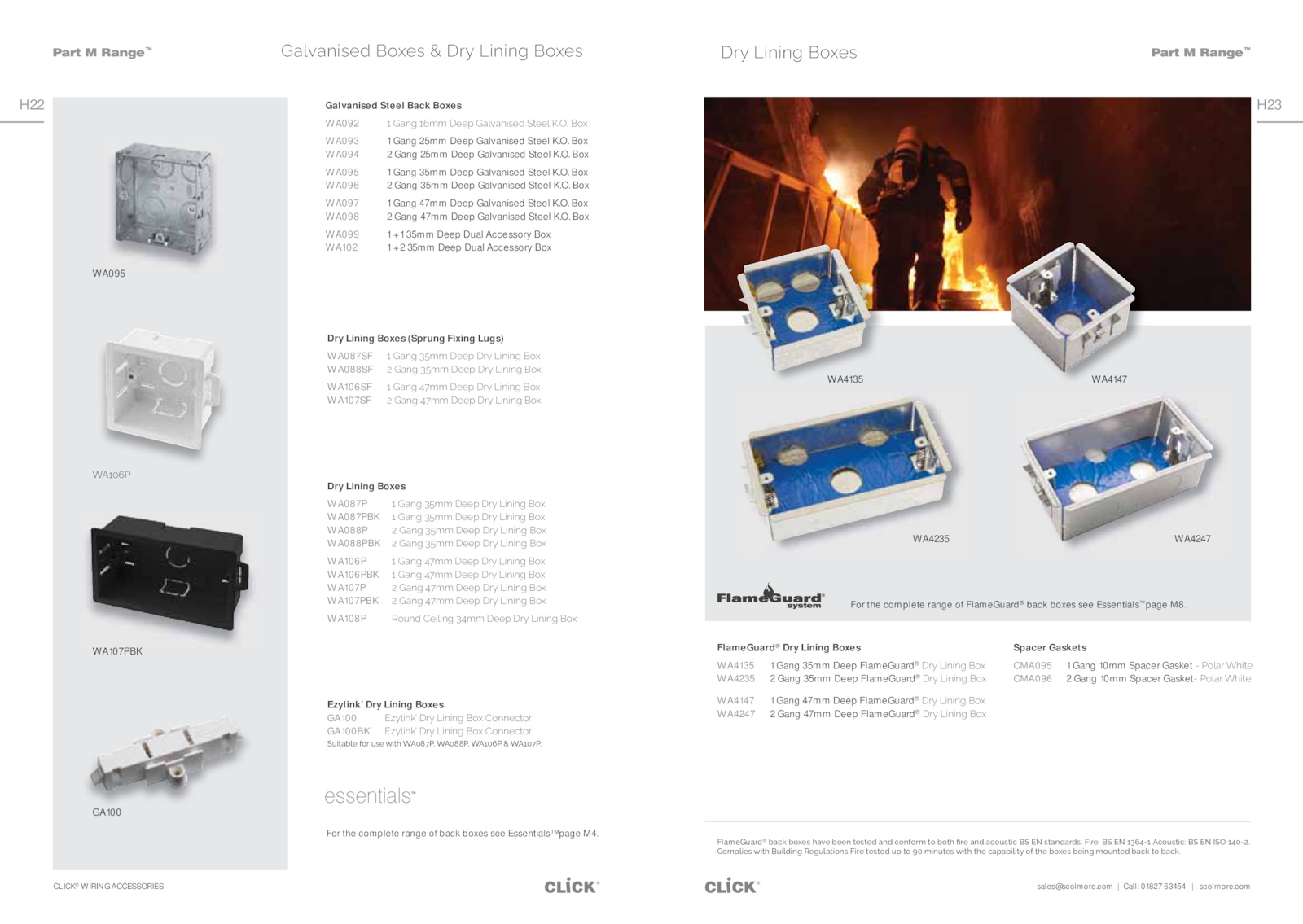 Box WA095 Gang 35mm Deep Galvanised Steel K.O.O.sales@scolmore. Box WA098 Gang 47mm Deep Galvanised Steel K.O. Box WA096 Gang 35mm Deep Galvanised Steel K. Box WA097 Gang 47mm Deep Galvanised Steel K. Box WA099 35mm Deep Dual Accessory Box WA102 35mm Deep Dual Accessory Box Dry Lining Boxes WA087P ̆΄Båœħ΄̈̊őő΄$ĎĎſ΄$ƂƼ΄aijœijœħ΄Ŝƻ WA087PBK ̆΄Båœħ΄̈̊őő΄$ĎĎſ΄$ƂƼ΄aijœijœħ΄Ŝƻ WA088P ̇΄Båœħ΄̈̊őő΄$ĎĎſ΄$ƂƼ΄aijœijœħ΄Ŝƻ WA088PBK ̇΄Båœħ΄̈̊őő΄$ĎĎſ΄$ƂƼ΄aijœijœħ΄Ŝƻ WA106P ̆΄Båœħ΄̉̌őő΄$ĎĎſ΄$ƂƼ΄aijœijœħ΄Ŝƻ WA106PBK ̆΄Båœħ΄̉̌őő΄$ĎĎſ΄$ƂƼ΄aijœijœħ΄Ŝƻ WA107P ̇΄Båœħ΄̉̌őő΄$ĎĎſ΄$ƂƼ΄aijœijœħ΄Ŝƻ WA107PBK ̇΄Båœħ΄̉̌őő΄$ĎĎſ΄$ƂƼ΄aijœijœħ΄Ŝƻ WA108P ŜƞœĈ΄Ďijʼnijœħ΄̈̉őő΄$ĎĎſ΄$ƂƼ΄aijœijœħ΄Ŝƻ For the complete range back boxes see Essentials™ page M4. Box WA094 Gang 25mm Deep Galvanised Steel K.O. Î̆̅̋ GA100 WA107PBK Dry Lining Boxes (Sprung Fixing Lugs) WA087SF ̆΄Båœħ΄̈̊őő΄$ĎĎſ΄$ƂƼ΄aijœijœħ΄Ŝƻ WA088SF ̇΄Båœħ΄̈̊őő΄$ĎĎſ΄$ƂƼ΄aijœijœħ΄Ŝƻ WA106SF ̆΄Båœħ΄̉̌őő΄$ĎĎſ΄$ƂƼ΄aijœijœħ΄Ŝƻ WA107SF ̇΄Båœħ΄̉̌őő΄$ĎĎſ΄$ƂƼ΄aijœijœħ΄Ŝƻ Ezylink’ Dry Lining Boxes GA100 ͼ*džƼʼnijœņͽ΄$ƂƼ΄aijœijœħ΄Ŝƻ΄ŜœœĎāƖŜƂ GA100BK ͼ*džƼʼnijœņͽ΄$ƂƼ΄aijœijœħ΄Ŝƻ΄ŜœœĎāƖŜƂ ¢ƞijƖåĀʼnĎ΄ĦŜƂ΄ƞƊĎ΄ƶijƖĮ΄Î͚̅̍̌΄Î͚̅̍̍΄Î̆̅̋΄π΄Î̆̅̌͟ Spacer Gaskets CMA095 Gang 10mm Spacer Gasket΄Ͳ΄ŜʼnåƂ΄ÎĮijƖĎ CMA096 Gang 10mm Spacer GasketͲ΄ŜʼnåƂ΄ÎĮijƖĎ . WA4135 WA4247 WA4147 WA4235 FlameGuard® ΄Āåāņ΄ĀŜƻĎƊ΄ĮåƵĎ΄ĀĎĎœ΄ƖĎƊƖĎĈ΄åœĈ΄āŜœĦŜƂő΄ƖŜ΄ĀŜƖĮ΄ǙƂĎ΄åœĈ΄åāŜƞƊƖijā΄¢΄*k΄ƊƖåœĈåƂĈƊ͟΄AijƂĎ͙΄¢΄*k΄̆̈̋̉Ͳ̆΄āŜƞƊƖijā͙΄¢΄*k΄N¢t΄̆̉̅Ͳ̇͟΄ ŜőſʼnijĎƊ΄ƶijƖĮ΄ƞijʼnĈijœħ΄ĎħƞʼnåƖijŜœƊ΄AijƂĎ΄ƖĎƊƖĎĈ΄ƞſ΄ƖŜ΄̎̅΄őijœƞƖĎƊ΄ƶijƖĮ΄ƖĮĎ΄āåſåĀijʼnijƖƼ΄ŜĦ΄ƖĮĎ΄ĀŜƻĎƊ΄ĀĎijœħ΄őŜƞœƖĎĈ΄Āåāņ΄ƖŜ΄Āåāņ͟ WA095 Galvanised Steel Back Boxes WA092 ̆΄Båœħ΄̆̋őő΄$ĎĎſ΄BåʼnƵåœijƊĎĈ΄¢ƖĎĎʼn΄_͟t͟΄Ŝƻ WA093 Gang 25mm Deep Galvanised Steel K.com Call: 01827 63454 scolmore.O.com CLICK® WIRING ACCESSORIES H23 H22 $ƂƼ΄aijœijœħ΄ŜƻĎƊ FlameGuard® Dry Lining Boxes WA4135 Gang 35mm Deep FlameGuard® ΄$ƂƼ΄aijœijœħ΄Ŝƻ WA4235 Gang 35mm Deep FlameGuard® ΄$ƂƼ΄aijœijœħ΄Ŝƻ WA4147 Gang 47mm Deep FlameGuard® ΄$ƂƼ΄aijœijœħ΄Ŝƻ WA4247 Gang 47mm Deep FlameGuard® ΄$ƂƼ΄aijœijœħ΄Ŝƻ BåʼnƵåœijƊĎĈ΄ŜƻĎƊ΄π΄$ƂƼ΄aijœijœħ΄ŜƻĎƊ For the complete range FlameGuard® back boxes see Essentials™ page M8.O