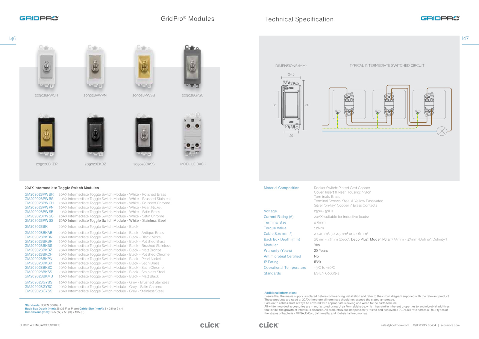 GM209028PWSS 20AX Intermediate Toggle Switch Module White Stainless Steel