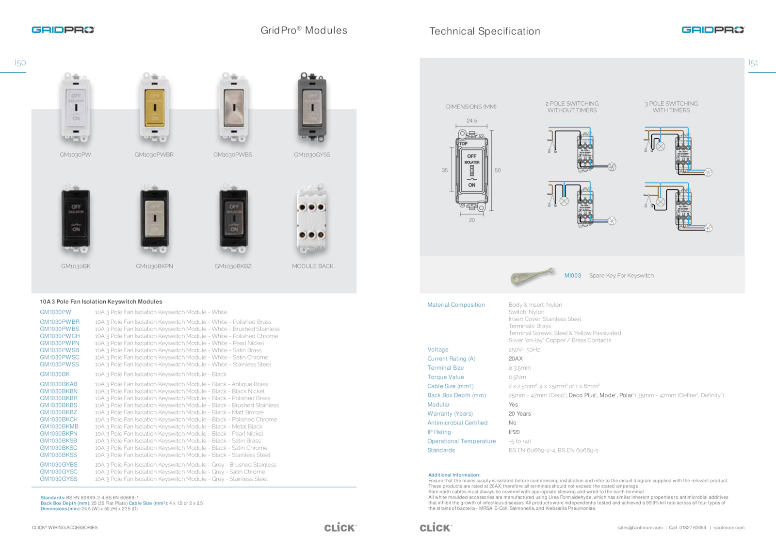 10A Pole Fan Isolation Keyswitch Modules