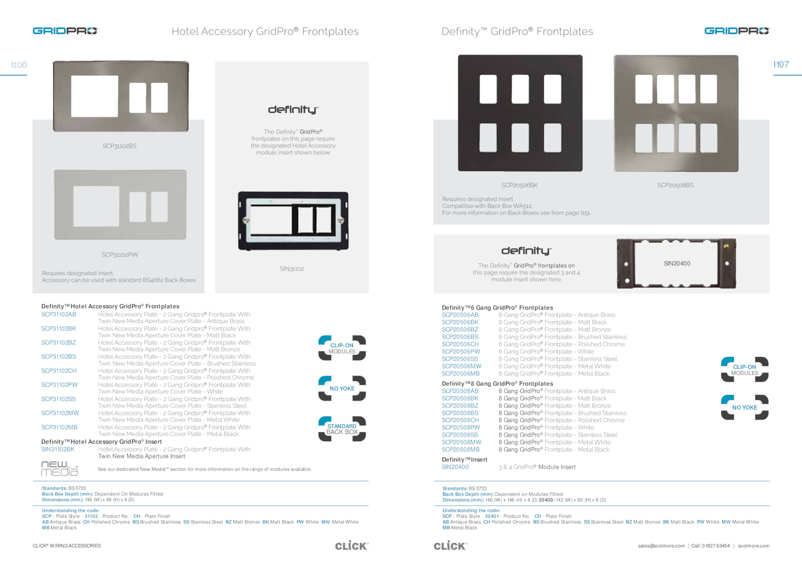 Plate Finish AB Antique Brass Polished Chrome Brushed Stainless Stainless Steel Matt Bronze Matt Black White Metal White MB Metal Black ¯ĮĎ΄$ĎǙœijƖƼυ GridPro® frontplates on ƖĮijƊ΄ſåħĎ΄ƂĎƁƞijƂĎ΄ƖĮĎ΄ĈĎƊijħœåƖĎĈ΄̈΄åœĈ΄̉΄ őŜĈƞʼnĎ΄ijœƊĎƂƖ΄ƊĮŜƶœ΄ĮĎƂĎ͟ SIN20400 NO YOKE CLIP-ON MODULES IŜƖĎʼn΄āāĎƊƊŜƂƼ΄BƂijĈƂŜ® ΄AƂŜœƖſʼnåƖĎƊ Definity™ Hotel Accessory GridPro® Frontplates SCP31102AB IŜƖĎʼn΄āāĎƊƊŜƂƼ΄ʼnåƖĎ΄Ͳ΄̇΄Båœħ΄BƂijĈſƂŜ® ΄AƂŜœƖſʼnåƖĎ΄ÎijƖĮ΄ ¯ƶijœ΄kĎƶ΄iĎĈijå΄ſĎƂƖƞƂĎ΄ŜƵĎƂ΄ʼnåƖĎ΄Ͳ΄œƖijƁƞĎ΄ƂåƊƊ SCP31102BK IŜƖĎʼn΄āāĎƊƊŜƂƼ΄ʼnåƖĎ΄Ͳ΄̇΄Båœħ΄BƂijĈſƂŜ® ΄AƂŜœƖſʼnåƖĎ΄ÎijƖĮ΄ ¯ƶijœ΄kĎƶ΄iĎĈijå΄ſĎƂƖƞƂĎ΄ŜƵĎƂ΄ʼnåƖĎ΄Ͳ΄iåƖƖ΄ʼnåāņ SCP31102BZ IŜƖĎʼn΄āāĎƊƊŜƂƼ΄ʼnåƖĎ΄Ͳ΄̇΄Båœħ΄BƂijĈſƂŜ® ΄AƂŜœƖſʼnåƖĎ΄ÎijƖĮ΄ ¯ƶijœ΄kĎƶ΄iĎĈijå΄ſĎƂƖƞƂĎ΄ŜƵĎƂ΄ʼnåƖĎ΄Ͳ΄iåƖƖ΄ƂŜœdžĎ SCP31102BS IŜƖĎʼn΄āāĎƊƊŜƂƼ΄ʼnåƖĎ΄Ͳ΄̇΄Båœħ΄BƂijĈſƂŜ® ΄AƂŜœƖſʼnåƖĎ΄ÎijƖĮ΄ ¯ƶijœ΄kĎƶ΄iĎĈijå΄ſĎƂƖƞƂĎ΄ŜƵĎƂ΄ʼnåƖĎ΄Ͳ΄ƂƞƊĮĎĈ΄¢ƖåijœʼnĎƊƊ SCP31102CH IŜƖĎʼn΄āāĎƊƊŜƂƼ΄ʼnåƖĎ΄Ͳ΄̇΄Båœħ΄BƂijĈſƂŜ® ΄AƂŜœƖſʼnåƖĎ΄ÎijƖĮ΄ ¯ƶijœ΄kĎƶ΄iĎĈijå΄ſĎƂƖƞƂĎ΄ŜƵĎƂ΄ʼnåƖĎ΄Ͳ΄ŜʼnijƊĮĎĈ΄ĮƂŜőĎ SCP31102PW IŜƖĎʼn΄āāĎƊƊŜƂƼ΄ʼnåƖĎ΄Ͳ΄̇΄Båœħ΄BƂijĈſƂŜ® ΄AƂŜœƖſʼnåƖĎ΄ÎijƖĮ΄ ¯ƶijœ΄kĎƶ΄iĎĈijå΄ſĎƂƖƞƂĎ΄ŜƵĎƂ΄ʼnåƖĎ΄Ͳ΄ÎĮijƖĎ SCP31102SS IŜƖĎʼn΄āāĎƊƊŜƂƼ΄ʼnåƖĎ΄Ͳ΄̇΄Båœħ΄BƂijĈſƂŜ® ΄AƂŜœƖſʼnåƖĎ΄ÎijƖĮ΄ ¯ƶijœ΄kĎƶ΄iĎĈijå΄ſĎƂƖƞƂĎ΄ŜƵĎƂ΄ʼnåƖĎ΄Ͳ΄¢ƖåijœʼnĎƊƊ΄¢ƖĎĎʼn SCP31102MW IŜƖĎʼn΄āāĎƊƊŜƂƼ΄ʼnåƖĎ΄Ͳ΄̇΄Båœħ΄BƂijĈſƂŜ® ΄AƂŜœƖſʼnåƖĎ΄ÎijƖĮ΄ ¯ƶijœ΄kĎƶ΄iĎĈijå΄ſĎƂƖƞƂĎ΄ŜƵĎƂ΄ʼnåƖĎ΄Ͳ΄iĎƖåʼn΄ÎĮijƖĎ SCP31102MB IŜƖĎʼn΄āāĎƊƊŜƂƼ΄ʼnåƖĎ΄Ͳ΄̇΄Båœħ΄BƂijĈſƂŜ® ΄AƂŜœƖſʼnåƖĎ΄ÎijƖĮ΄ ¯ƶijœ΄kĎƶ΄iĎĈijå΄ſĎƂƖƞƂĎ΄ŜƵĎƂ΄ʼnåƖĎ΄Ͳ΄iĎƖåʼn΄ʼnåāņ Definity™ Hotel Accessory GridPro® Insert SIN31102BK IŜƖĎʼn΄āāĎƊƊŜƂƼ΄ʼnåƖĎ΄Ͳ΄̇΄Båœħ΄BƂijĈſƂŜ® ΄AƂŜœƖſʼnåƖĎ΄ÎijƖĮ΄ Twin New Media Aperture Insert Understanding the code: SCP Plate Style 31102 Product No.sales@scolmore.com Call: 01827 63454 scolmore. Plate Finish AB Antique Brass Polished Chrome Brushed Stainless Stainless Steel Matt Bronze Matt Black White Metal White MB Metal Black Standards: 5733 Back Box Depth (mm): Dependent Modules Fitted Dimensions (mm): 146 (W) (H) (D) ĎƁƞijƂĎƊ΄ĈĎƊijħœåƖĎĈ΄ijœƊĎƂƖ͟ āāĎƊƊŜƂƼ΄āåœ΄ĀĎ΄ƞƊĎĈ΄ƶijƖĮ΄ƊƖåœĈåƂĈ΄¢̉̋̋̇΄åāņ΄ŜƻĎƊ͟ ¢̈̆̆̅̇¢ ¢̈̆̆̅̇Î ¯ĮĎ΄$ĎǙœijƖƼυ GridPro® ĦƂŜœƖſʼnåƖĎƊ΄Ŝœ΄ƖĮijƊ΄ſåħĎ΄ƂĎƁƞijƂĎ΄ ƖĮĎ΄ĈĎƊijħœåƖĎĈ΄IŜƖĎʼn΄āāĎƊƊŜƂƼ΄ őŜĈƞʼnĎ΄ijœƊĎƂƖ΄ƊĮŜƶœ΄ĀĎʼnŜƶ͟ ¢Nk̈̆̆̅̇ CLIP-ON MODULES NO YOKE STANDARD BACK BOX See our dedicated New MediaTM section for more information the range modules available.com Call: 01827 63454 scolmore.com CLICK® WIRING ACCESSORIES N̆̅̋ $ĎĦijœijƖƼυ΄BƂijĈƂŜ® ΄AƂŜœƖſʼnåƖĎƊ ĎƁƞijƂĎƊ΄ĈĎƊijħœåƖĎĈ΄ijœƊĎƂƖ͟΄ ŜőſåƖijĀʼnĎ΄ƶijƖĮ΄åāņ΄Ŝƻ΄Î̊̆̇͟΄ AŜƂ΄őŜƂĎ΄ijœĦŜƂőåƖijŜœ΄Ŝœ΄åāņ΄ŜƻĎƊ΄ƊĎĎ΄ĦƂŜő΄ſåħĎ΄N̆̊̆͟ Definity™ Gang GridPro® Frontplates SCP20506AB ̋΄Båœħ΄BƂijĈƂŜ® ΄AƂŜœƖſʼnåƖĎ΄Ͳ΄œƖijƁƞĎ΄ƂåƊƊ SCP20506BK ̋΄Båœħ΄BƂijĈƂŜ® ΄AƂŜœƖſʼnåƖĎ΄Ͳ΄iåƖƖ΄ʼnåāņ SCP20506BZ ̋΄Båœħ΄BƂijĈƂŜ® ΄AƂŜœƖſʼnåƖĎ΄Ͳ΄iåƖƖ΄ƂŜœdžĎ SCP20506BS ̋΄Båœħ΄BƂijĈƂŜ® ΄AƂŜœƖſʼnåƖĎ΄Ͳ΄ƂƞƊĮĎĈ΄¢ƖåijœʼnĎƊƊ SCP20506CH ̋΄Båœħ΄BƂijĈƂŜ® ΄AƂŜœƖſʼnåƖĎ΄Ͳ΄ŜʼnijƊĮĎĈ΄ĮƂŜőĎ SCP20506PW ̋΄Båœħ΄BƂijĈƂŜ® ΄AƂŜœƖſʼnåƖĎ΄Ͳ΄ÎĮijƖĎ SCP20506SS ̋΄Båœħ΄BƂijĈƂŜ® ΄AƂŜœƖſʼnåƖĎ΄Ͳ΄¢ƖåijœʼnĎƊƊ΄¢ƖĎĎʼn SCP20506MW ̋΄Båœħ΄BƂijĈƂŜ® ΄AƂŜœƖſʼnåƖĎ΄Ͳ΄iĎƖåʼn΄ÎĮijƖĎ SCP20506MB ̋΄Båœħ΄BƂijĈƂŜ® ΄AƂŜœƖſʼnåƖĎ΄Ͳ΄iĎƖåʼn΄ʼnåāņ Definity™ Gang GridPro® Frontplates SCP20508AB Gang GridPro® ΄AƂŜœƖſʼnåƖĎ΄Ͳ΄œƖijƁƞĎ΄ƂåƊƊ SCP20508BK Gang GridPro® ΄AƂŜœƖſʼnåƖĎ΄Ͳ΄iåƖƖ΄ʼnåāņ SCP20508BZ Gang GridPro® ΄AƂŜœƖſʼnåƖĎ΄Ͳ΄iåƖƖ΄ƂŜœdžĎ SCP20508BS Gang GridPro® ΄AƂŜœƖſʼnåƖĎ΄Ͳ΄ƂƞƊĮĎĈ΄¢ƖåijœʼnĎƊƊ SCP20508CH Gang GridPro® ΄AƂŜœƖſʼnåƖĎ΄Ͳ΄ŜʼnijƊĮĎĈ΄ĮƂŜőĎ SCP20508PW Gang GridPro® ΄AƂŜœƖſʼnåƖĎ΄Ͳ΄ÎĮijƖĎ SCP20508SS Gang GridPro® ΄AƂŜœƖſʼnåƖĎ΄Ͳ΄¢ƖåijœʼnĎƊƊ΄¢ƖĎĎʼn SCP20508MW Gang GridPro® ΄AƂŜœƖſʼnåƖĎ΄Ͳ΄iĎƖåʼn΄ÎĮijƖĎ SCP20508MB Gang GridPro® ΄AƂŜœƖſʼnåƖĎ΄Ͳ΄iĎƖåʼn΄ʼnåāņ Definity™ Insert SIN20400 ̈΄π΄̉΄BƂijĈƂŜ® Module Insert Standards: 5733 Back Box Depth (mm): Dependent Modules Fitted Dimensions (mm): 146 (W) 146 (H) (D) 20400: 142 (W) (H) (D) ¢̇̅̊̅̋_ ¢̇̅̊̅̍¢ Understanding the code: SCP Plate Style 20401 Product No.com CLICK® WIRING ACCESSORIES I107 sales@scolmore.