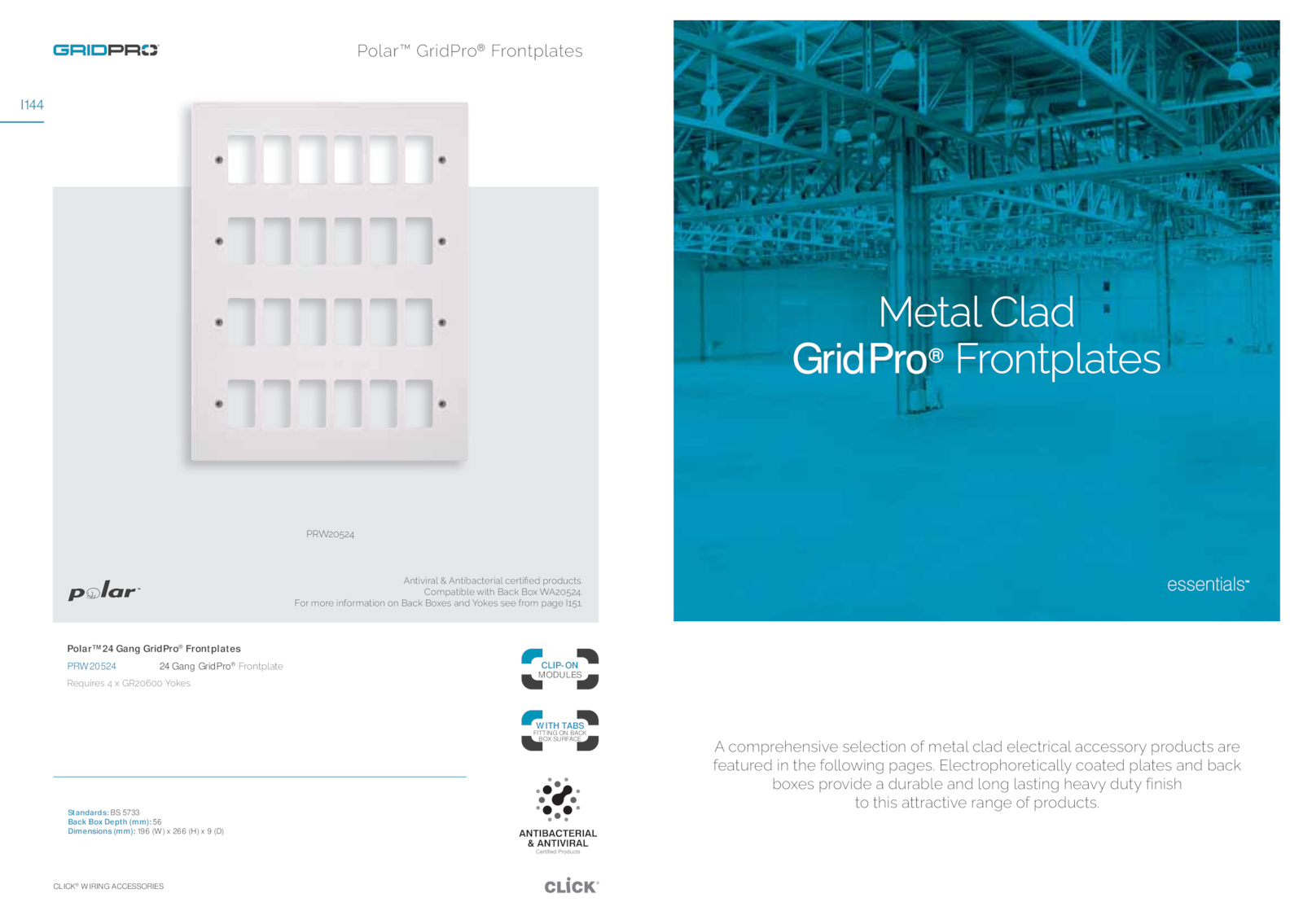 CLICK® WIRING ACCESSORIES I144 CLIP-ON MODULES WITH TABS FITTING BACK BOX SURFACE iĎƖåʼn΄ʼnåĈ GridPro® ΄AƂŜœƖſʼnåƖĎƊ ΄āŜőſƂĎĮĎœƊijƵĎ΄ƊĎʼnĎāƖijŜœ΄ŜĦ΄őĎƖåʼn΄āʼnåĈ΄ĎʼnĎāƖƂijāåʼn΄åāāĎƊƊŜƂƼ΄ſƂŜĈƞāƖƊ΄åƂĎ΄ ĦĎåƖƞƂĎĈ΄ijœ΄ƖĮĎ΄ĦŜʼnʼnŜƶijœħ΄ſåħĎƊ͟΄*ʼnĎāƖƂŜſĮŜƂĎƖijāåʼnʼnƼ΄āŜåƖĎĈ΄ſʼnåƖĎƊ΄åœĈ΄Āåāņ΄ ĀŜƻĎƊ΄ſƂŜƵijĈĎ΄å΄ĈƞƂåĀʼnĎ΄åœĈ΄ʼnŜœħ΄ʼnåƊƖijœħ΄ĮĎåƵƼ΄ĈƞƖƼ΄ĦijœijƊĮ΄ ƖŜ΄ƖĮijƊ΄åƖƖƂåāƖijƵĎ΄ƂåœħĎ΄ŜĦ΄ſƂŜĈƞāƖƊ͟ ŜʼnåƂυ΄BƂijĈƂŜ® ΄AƂŜœƖſʼnåƖĎƊ œƖijƵijƂåʼn΄π΄œƖijĀåāƖĎƂijåʼn΄āĎƂƖijǙĎĈ΄ſƂŜĈƞāƖƊ͟ ŜőſåƖijĀʼnĎ΄ƶijƖĮ΄åāņ΄Ŝƻ΄Î̇̅̊̇̉͟ AŜƂ΄őŜƂĎ΄ijœĦŜƂőåƖijŜœ΄Ŝœ΄åāņ΄ŜƻĎƊ΄åœĈ΄ÔŜņĎƊ΄ƊĎĎ΄ĦƂŜő΄ſåħĎ΄N̆̊̆͟ Polar™ Gang GridPro® Frontplates PRW20524 Gang GridPro® ΄AƂŜœƖſʼnåƖĎ ĎƁƞijƂĎƊ΄̉΄ƻ΄Ḃ̅̋̅̅΄ÔŜņĎƊ͟ Standards: 5733 Back Box Depth (mm): 56 Dimensions (mm): 196 (W) 266 (H) (D) Î̇̅̊̇̉