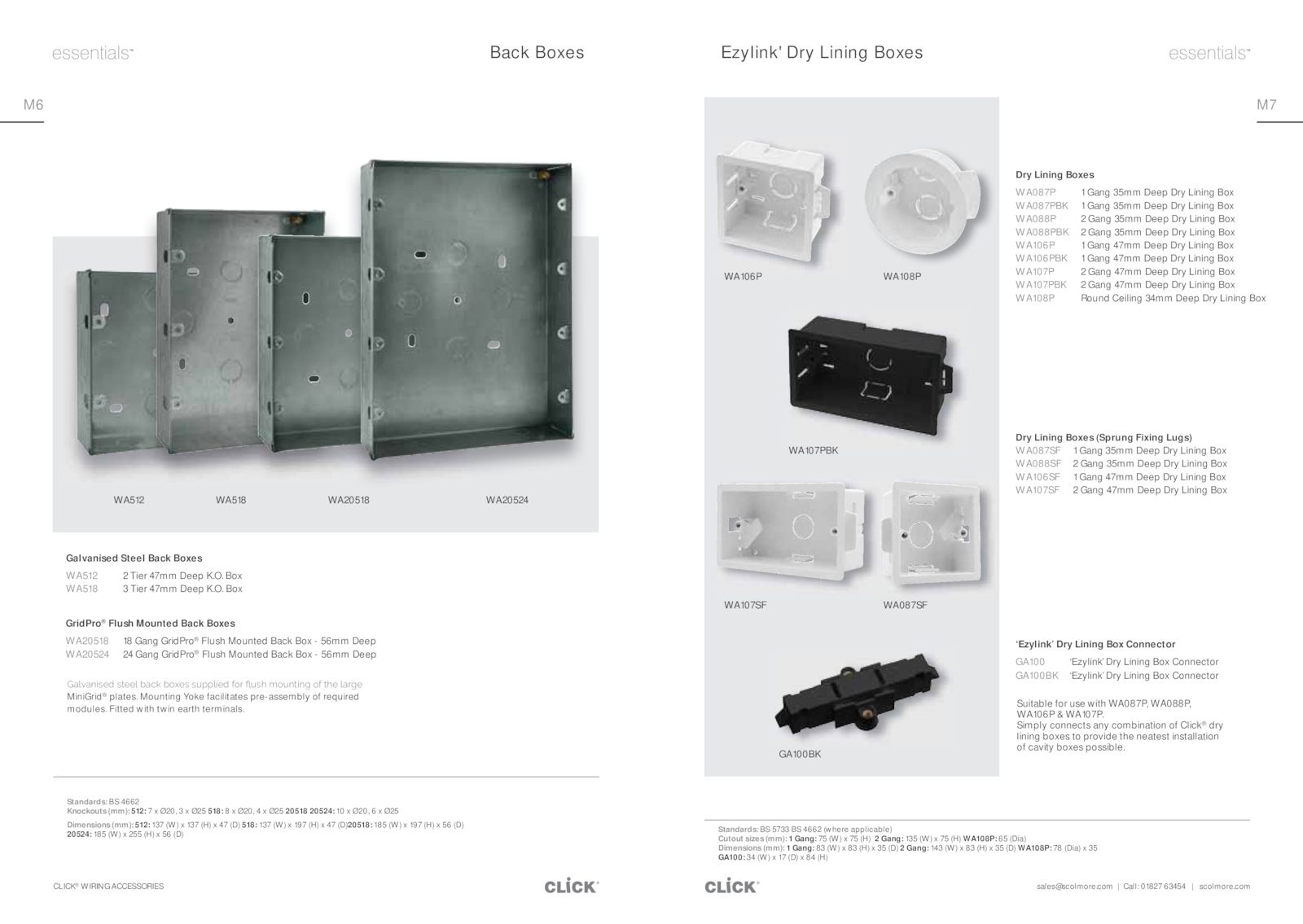 of cavity boxes possible. Fitted with twin earth terminals. Mounting Yoke facilitates pre-assembly required