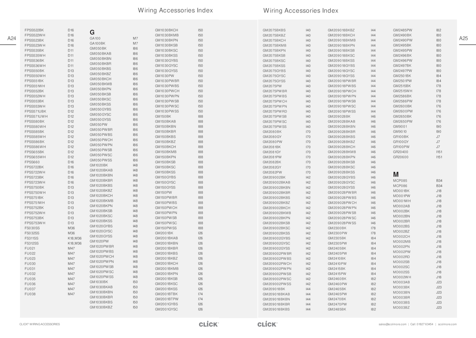 com CLICK® WIRING ACCESSORIES A25 A24 GM1030BKCH I50 GM1030BKMB I50 GM1030BKPN I50 GM1030BKSB I50 GM1030BKSC I50 GM1030BKSS I50 GM1030GYBS I50 GM1030GYSC I50 GM1030GYSS I50 GM1030PW I50 GM1030PWBR I50 GM1030PWBS I50 GM1030PWCH I50 GM1030PWPN I50 GM1030PWSB I50 GM1030PWSC I50 GM1030PWSS I50 GM150BK I88 GM150BKAB I88 GM150BKBN I88 GM150BKBR I88 GM150BKBS I88 GM150BKBZ I88 GM150BKCH I88 GM150BKMB I88 GM150BKPN I88 GM150BKSB I88 GM150BKSC I88 GM150BKSS I88 GM150GYBS I88 GM150GYSC I88 GM150GYSS I88 GM150PW I88 GM150PWBR I88 GM150PWBS I88 GM150PWCH I88 GM150PWPN I88 GM150PWSB I88 GM150PWSC I88 GM150PWSS I88 GM2001BK I26 GM2001BKAB I26 GM2001BKBN I26 GM2001BKBR I26 GM2001BKBS I26 GM2001BKBZ I26 GM2001BKCH I26 GM2001BKMB I26 GM2001BKPN I26 GM2001BKSB I26 GM2001BKSC I26 GM2001BKSS I26 GM2001BTBK I74 GM2001BTPW I74 GM2001GYBS I26 GM2001GYSC I26 G GA100 M7 GA100BK M7 GM050BK I86 GM050BKAB I86 GM050BKBN I86 GM050BKBR I86 GM050BKBS I86 GM050BKBZ I86 GM050BKCH I86 GM050BKMB I86 GM050BKPN I86 GM050BKSB I86 GM050BKSC I86 GM050BKSS I86 GM050GYBS I86 GM050GYSC I86 GM050GYSS I86 GM050PW I86 GM050PWBR I86 GM050PWBS I86 GM050PWCH I86 GM050PWPN I86 GM050PWSB I86 GM050PWSC I86 GM050PWSS I86 GM1020BK I48 GM1020BKAB I48 GM1020BKBN I48 GM1020BKBR I48 GM1020BKBS I48 GM1020BKBZ I48 GM1020BKCH I48 GM1020BKMB I48 GM1020BKPN I48 GM1020BKSB I48 GM1020BKSC I48 GM1020BKSS I48 GM1020GYBS I48 GM1020GYSC I48 GM1020GYSS I48 GM1020PW I48 GM1020PWBR I48 GM1020PWBS I48 GM1020PWCH I48 GM1020PWPN I48 GM1020PWSB I48 GM1020PWSC I48 GM1020PWSS I48 GM1030BK I50 GM1030BKAB I50 GM1030BKBN I50 GM1030BKBR I50 GM1030BKBS I50 GM1030BKBZ I50 FPSS522BK D16 FPSS522WH D16 FPSS523BK D16 FPSS523WH D16 FPSS535BK D11 FPSS535WH D11 FPSS536BK D11 FPSS536WH D11 FPSS550BK D13 FPSS550WH D13 FPSS551BK D13 FPSS551WH D13 FPSS552BK D13 FPSS552WH D13 FPSS553BK D13 FPSS553WH D13 FPSS571UBK D12 FPSS571UWH D12 FPSS580BK D12 FPSS580WH D12 FPSS585BK D12 FPSS585WH D12 FPSS586BK D12 FPSS586WH D12 FPSS655BK D12 FPSS655WH D12 FPSS660 D16 FPSS722BK D16 FPSS722WH D16 FPSS723BK D16 FPSS723WH D16 FPSS750BK D13 FPSS750WH D13 FPSS751BK D13 FPSS751WH D13 FPSS752BK D13 FPSS752WH D13 FPSS753BK D13 FPSS753WH D13 FS030SS M36 FS032SS M36 FS311SS K18,M36 FS312SS K18,M36 FU021 M47 FU022 M47 FU023 M47 FU030 M47 FU031 M47 FU032 M47 FU035 M47 FU036 M47 FU037 M47 FU038 M47 GM2485PW I82 GM2490BK I80 GM2490PW I80 GM2495BK I80 GM2495PW I80 GM2496BK I80 GM2496PW I80 GM2497BK I80 GM2497PW I80 GM2501BK I84 GM2501PW I84 GM2515BK I78 GM2515WH I78 GM2586BK I78 GM2586PW I78 GM2600BK I76 GM2600PW I76 GM2650BK I76 GM2650PW I76 GM9001 I90 GM9010 I90 GR100BK J7 GR100GY J7 GR100PW J7 GR20400 I151 GR20600 I151 M MCP085 B34 MCP086 B34 MD001BK J18 MD001PW J18 MD001WH J18 MD002AB J18 MD002BK J18 MD002BN J18 MD002BR J18 MD002BS J18 MD002BZ J18 MD002CH J18 MD002MB J18 MD002PN J18 MD002PW J18 MD002RD J18 MD002SB J18 MD002SC J18 MD002SS J18 MD002WH J18 MD003AB J23 MD003BK J23 MD003BN J23 MD003BR J23 MD003BS J23 MD003BZ J23 GM209018BKBZ I44 GM209018BKCH I44 GM209018BKMB I44 GM209018BKPN I44 GM209018BKSB I44 GM209018BKSC I44 GM209018BKSS I44 GM209018GYBS I44 GM209018GYSC I44 GM209018GYSS I44 GM209018PWBR I44 GM209018PWBS I44 GM209018PWCH I44 GM209018PWPN I44 GM209018PWSB I44 GM209018PWSC I44 GM209018PWSS I44 GM209028BK I46 GM209028BKAB I46 GM209028BKBN I46 GM209028BKBR I46 GM209028BKBS I46 GM209028BKBZ I46 GM209028BKCH I46 GM209028BKMB I46 GM209028BKPN I46 GM209028BKSB I46 GM209028BKSC I46 GM209028BKSS I46 GM209028GYBS I46 GM209028GYSC I46 GM209028GYSS I46 GM209028PWBR I46 GM209028PWBS I46 GM209028PWCH I46 GM209028PWPN I46 GM209028PWSB I46 GM209028PWSC I46 GM209028PWSS I46 GM2300BK I78 GM2300PW I78 GM2305BK I84 GM2305PW I84 GM2405BK I84 GM2405PW I84 GM2410BK I84 GM2410PW I84 GM2415BK I84 GM2415PW I84 GM2460BK I82 GM2460PW I82 GM2465BK I82 GM2465PW I82 GM2470BK I82 GM2470PW I82 GM2485BK I82 GM2075BKBS I40 GM2075BKBZ I40 GM2075BKCH I40 GM2075BKMB I40 GM2075BKPN I40 GM2075BKSB I40 GM2075BKSC I40 GM2075BKSS I40 GM2075GYBS I40 GM2075GYSC I40 GM2075GYSS I40 GM2075PW I40 GM2075PWBR I40 GM2075PWBS I40 GM2075PWCH I40 GM2075PWPN I40 GM2075PWRD I40 GM2075PWSB I40 GM2075PWSC I40 GM2075PWSS I40 GM2080BK I70 GM2080GY I70 GM2080PW I70 GM2081BK I70 GM2081GY I70 GM2081PW I70 GM2082BK I70 GM2082GY I70 GM2082PW I70 GM209002BK I42 GM209002BKAB I42 GM209002BKBN I42 GM209002BKBR I42 GM209002BKBS I42 GM209002BKBZ I42 GM209002BKCH I42 GM209002BKMB I42 GM209002BKPN I42 GM209002BKSB I42 GM209002BKSC I42 GM209002BKSS I42 GM209002GYBS I42 GM209002GYSC I42 GM209002GYSS I42 GM209002PWBR I42 GM209002PWBS I42 GM209002PWCH I42 GM209002PWPN I42 GM209002PWSB I42 GM209002PWSC I42 GM209002PWSS I42 GM209018BK I44 GM209018BKAB I44 GM209018BKBN I44 GM209018BKBR I44 GM209018BKBS I44 .com Call: 01827 63454 scolmore.Wiring Accessories Index Wiring Accessories Index sales@scolmore