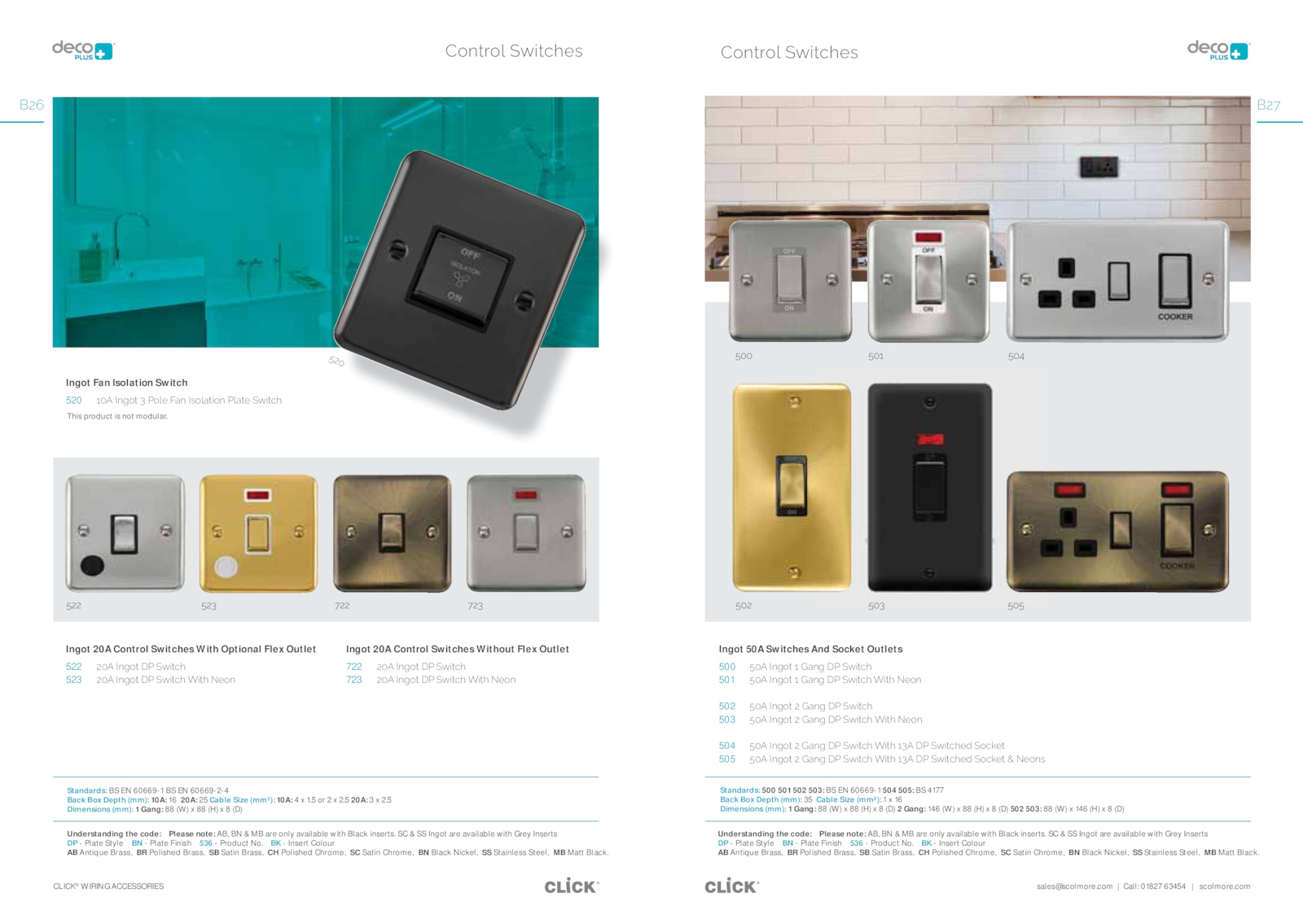 Back Box Depth (mm): 10A: 20A: Cable Size (mm²): 10A: 1. Ingot are available with Grey Inserts