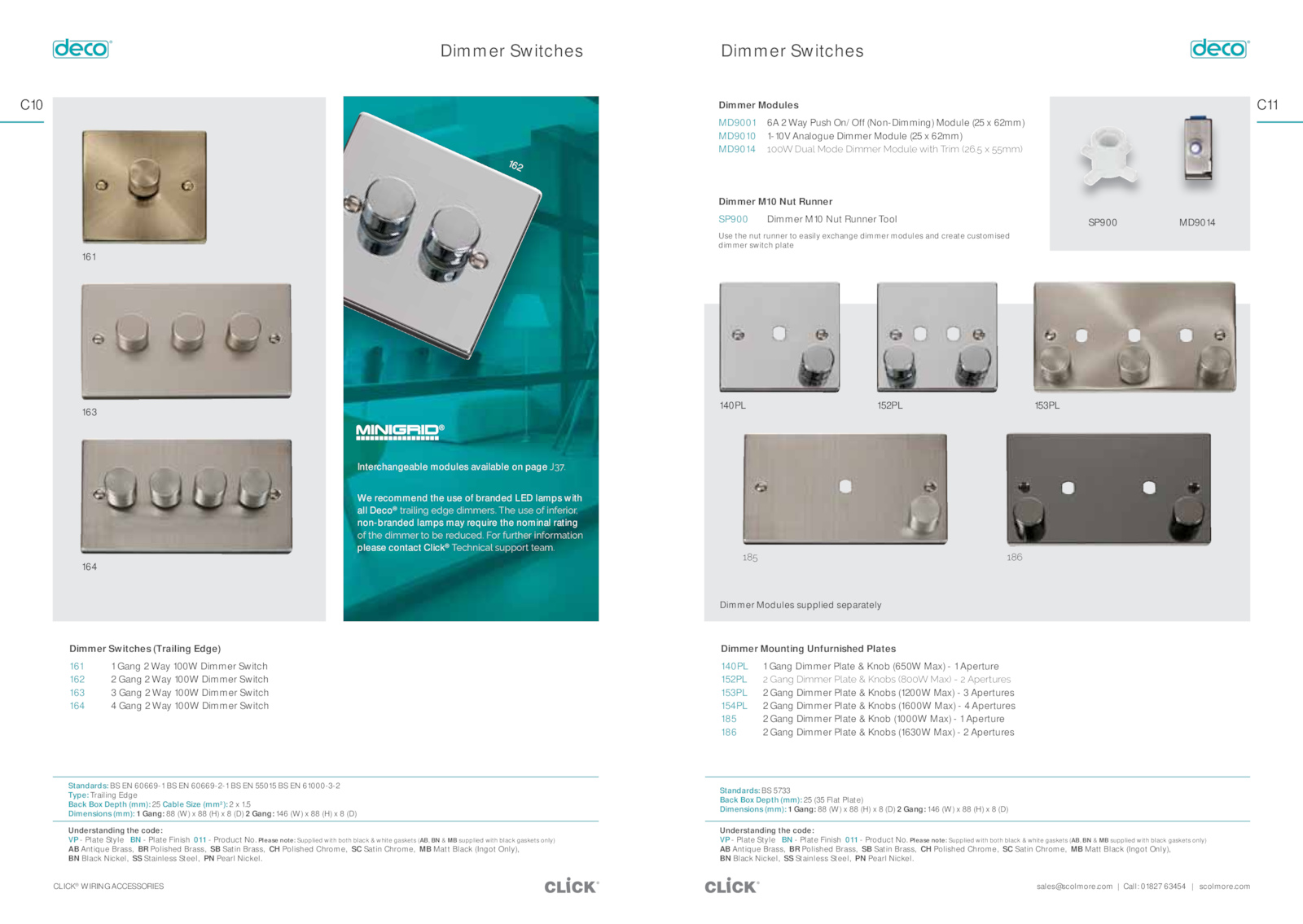 186 Gang Dimmer Plate Knobs (1630W Max) Apertures