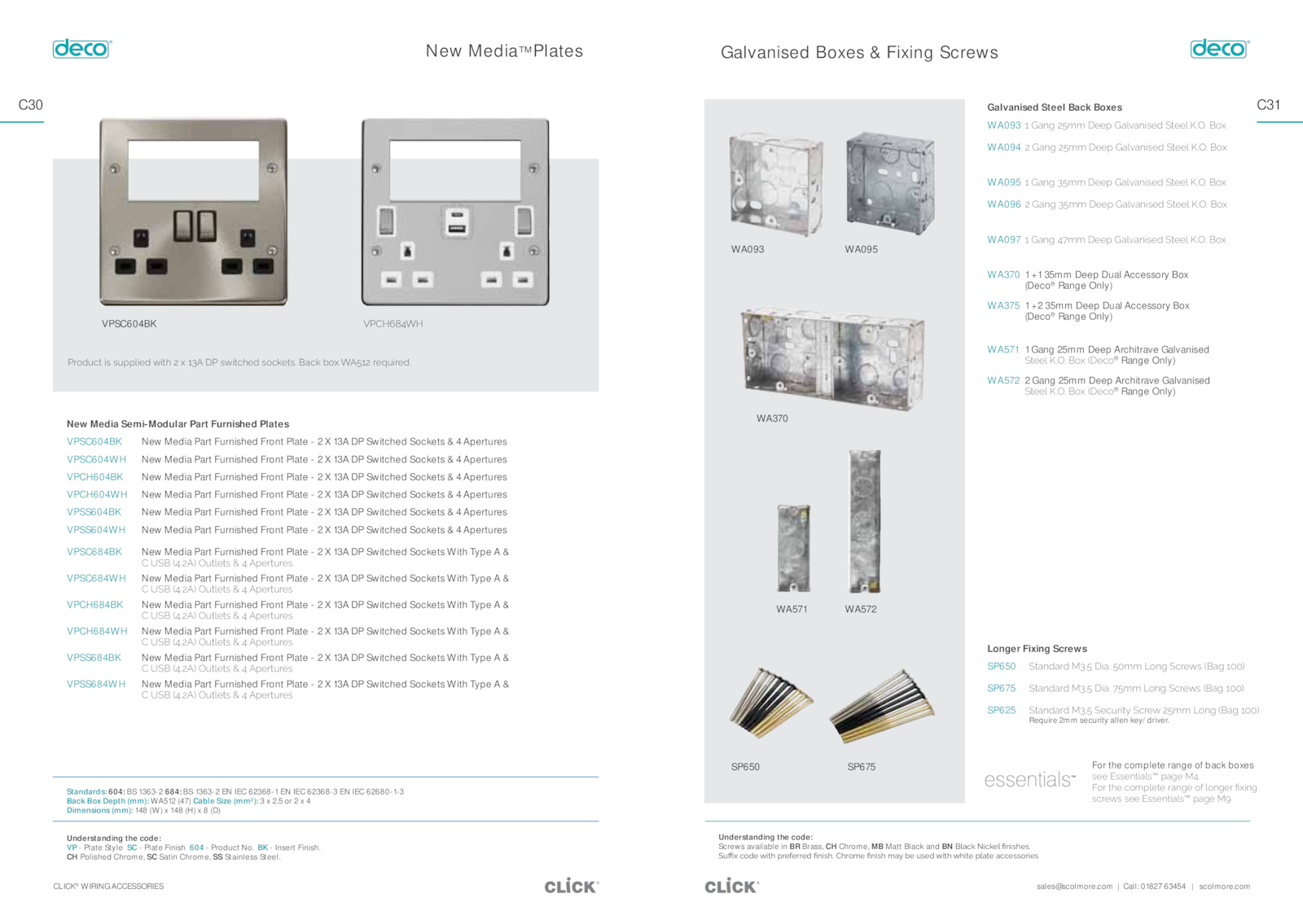 VPSC604WH New Media Part Furnished Front Plate 13A Switched Sockets Apertures