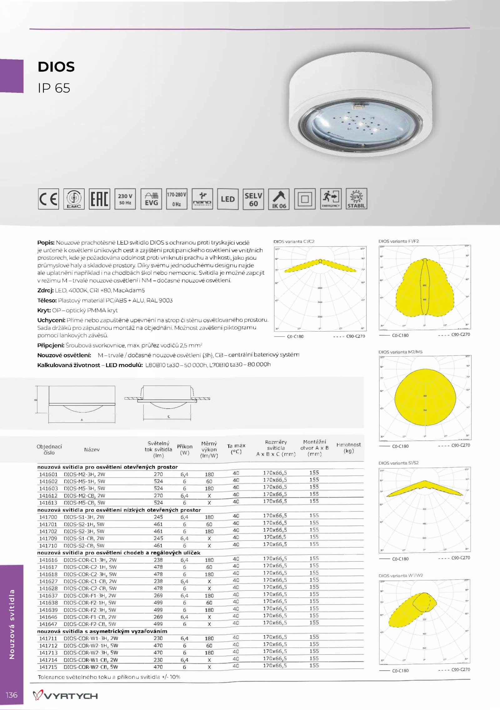 Popis: Nouzové prachotěsné LED svítidlo DIOS ochranou proti tryskající vodě dios varianta cvcz
