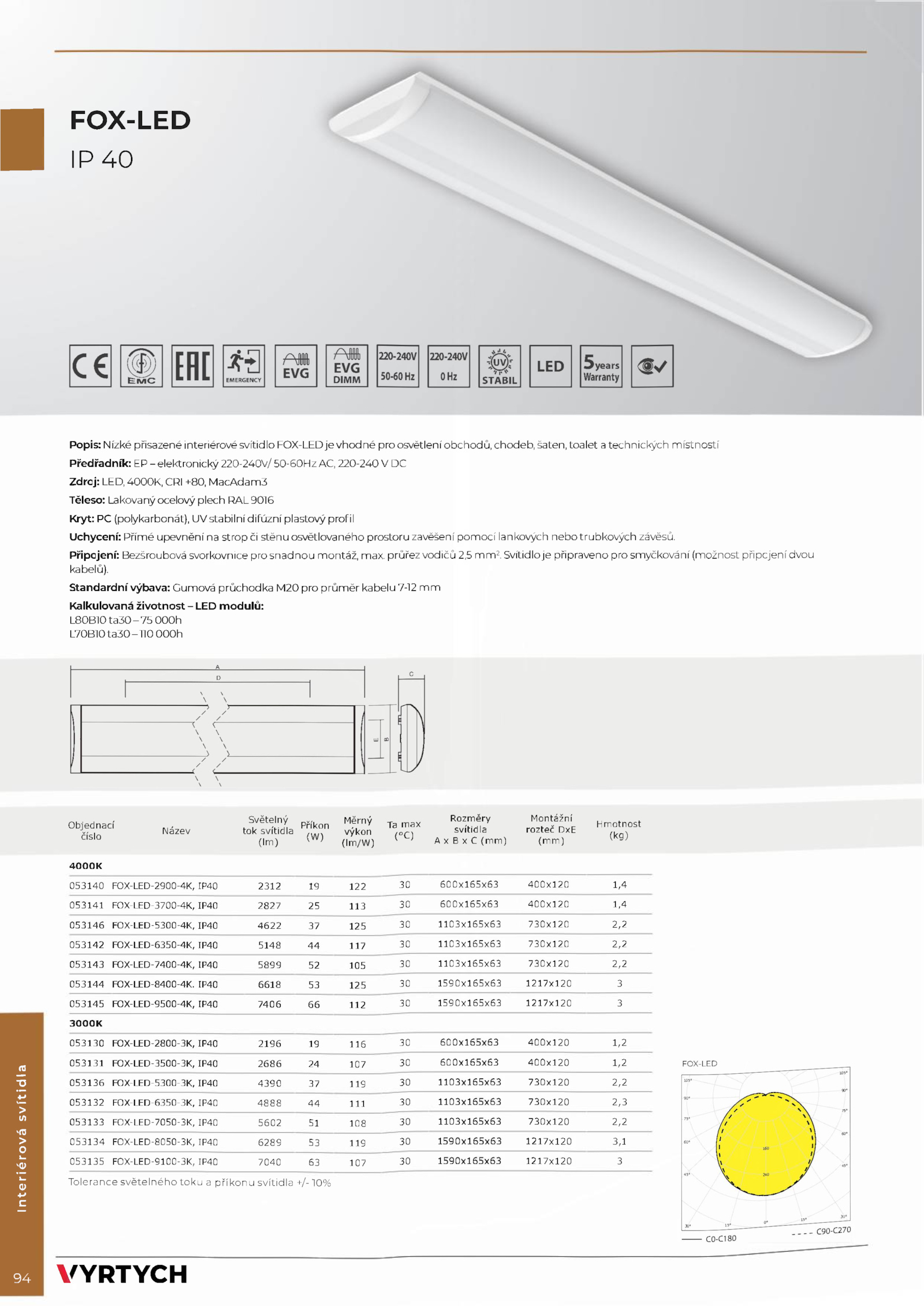 053136 FOX-LED-5300-3K, IP40 4390 119 1103x165x63 730x120 2,2