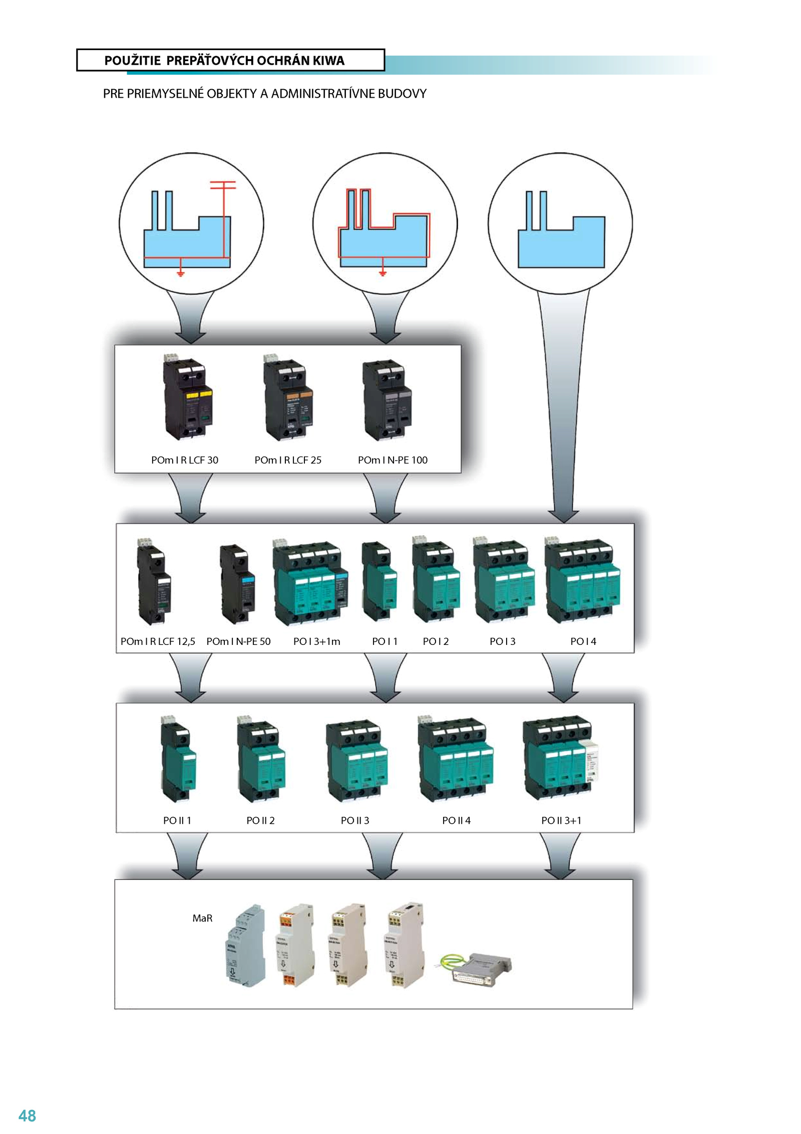 POUŽITIE PREPÄŤOVÝCH OCHRÁN KIWA PRE PRIEMYSELNÉ OBJEKTY ADMINISTRATÍVNE BUDOVY POm LCF 30 POm LCF 25 POm N-PE 100 POm LCF 12,5 POm N-PE 50 PO 3+1m PO 1 PO 2 PO 3 PO 4 PO 1 PO 2 PO 3 PO 4 PO 3+1 MaR 48