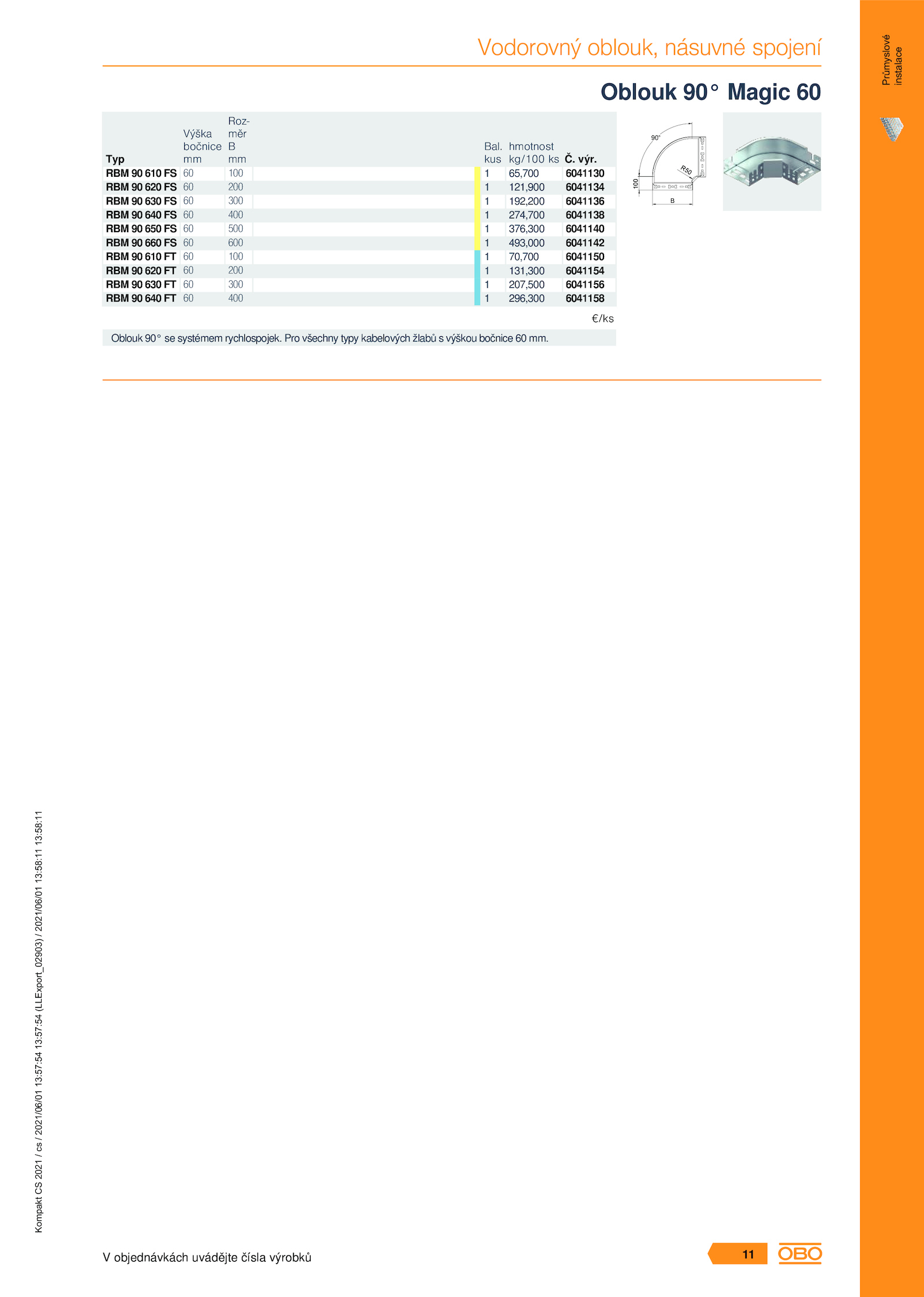 . Pro všechny typy kabelových žlabů výškou bočnice mm. výr.Vodorovný oblouk, násuvné spojení