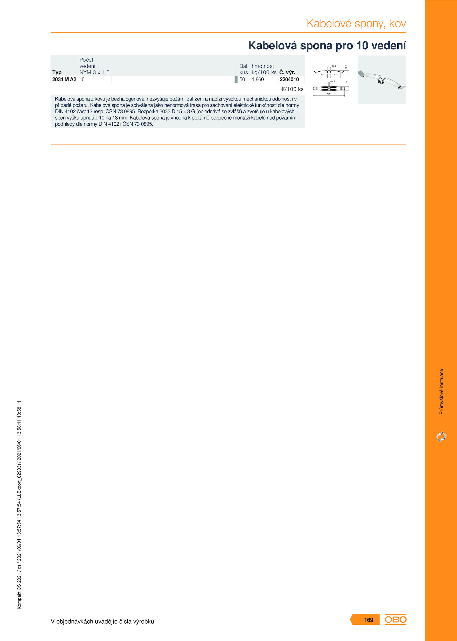 Bal. Kabelová spona schválena jako nenormová trasa pro zachování elektrické funkčnosti dle normy