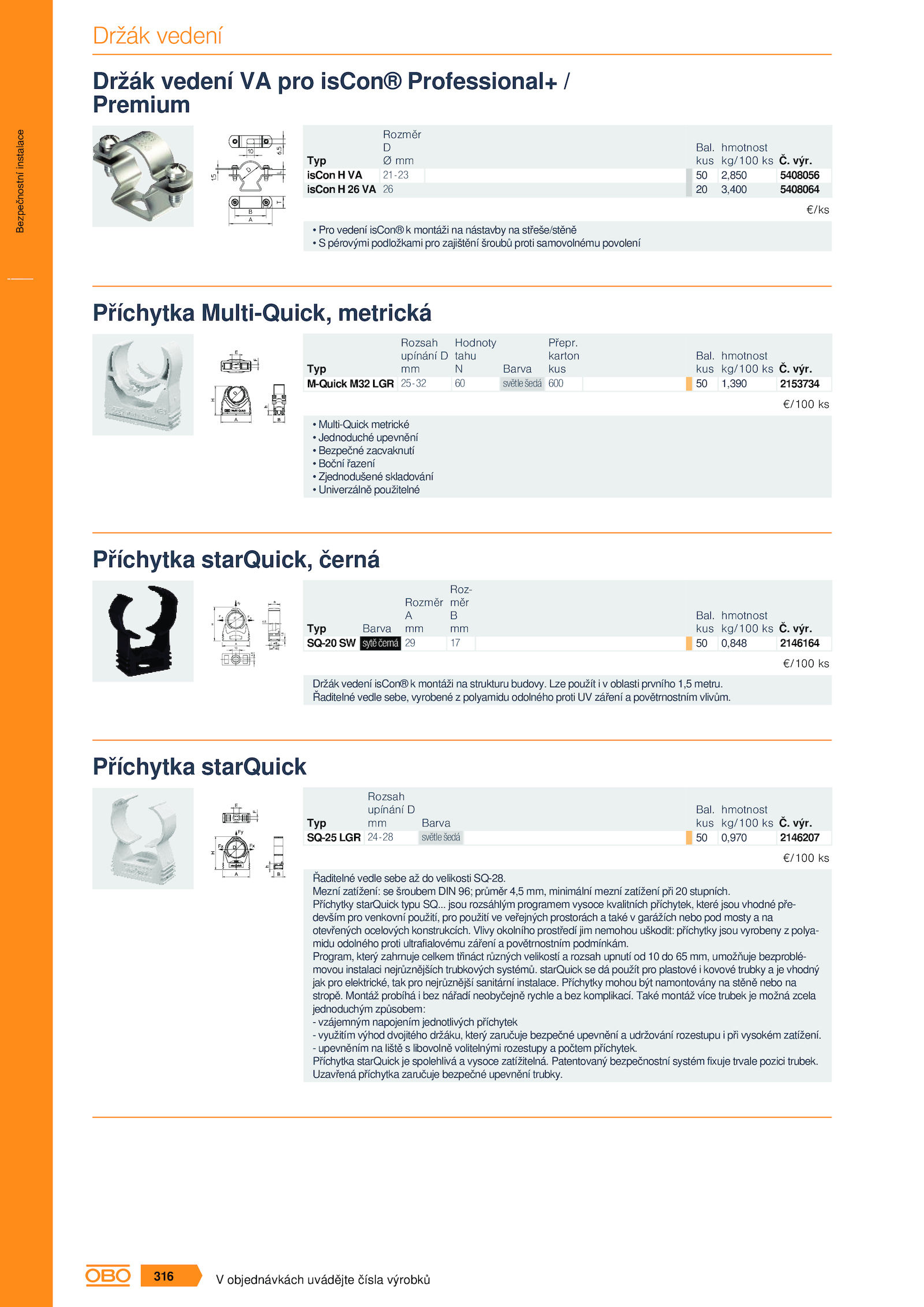 Příchytka starQuick spolehlivá vysoce zatížitelná. Také montáž více trubek možná zcela