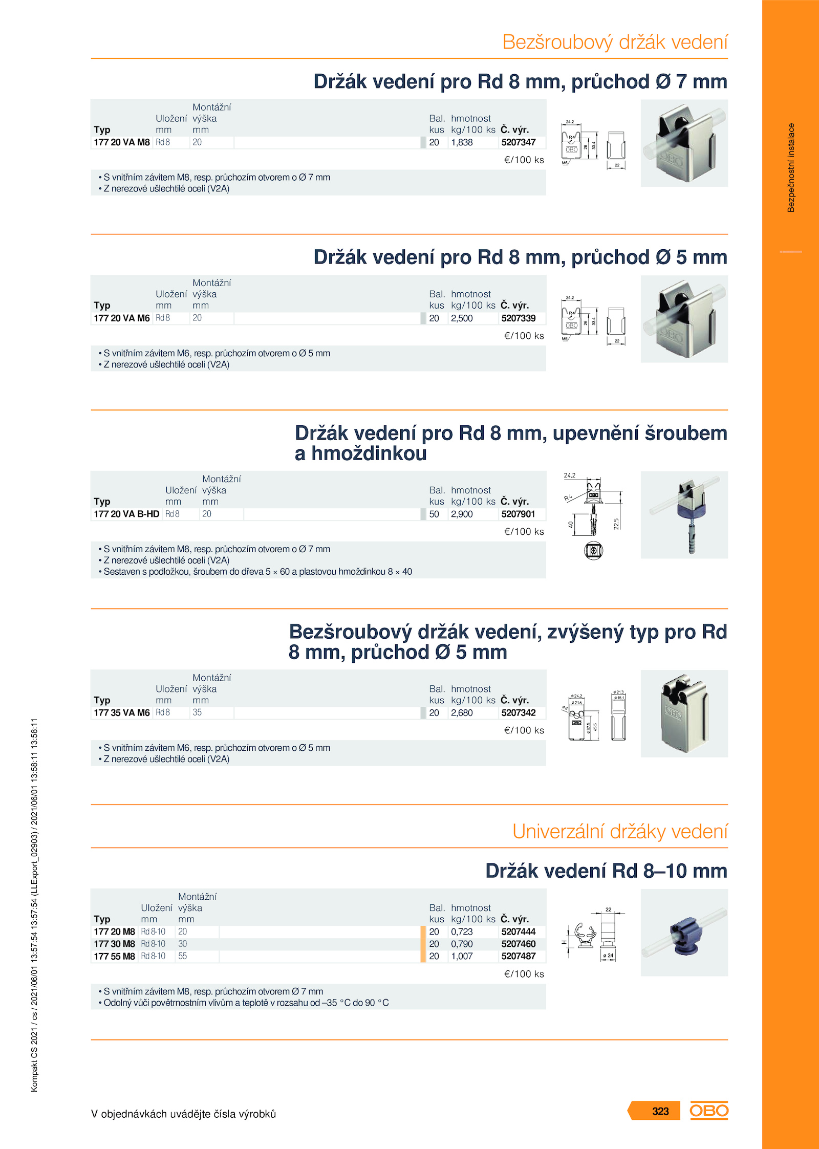 Bezšroubový držák vedení, zvýšený typ pro Rd