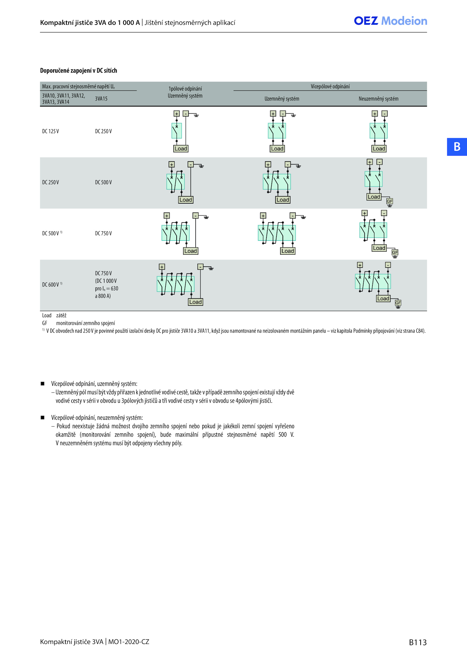 Kompaktní jističe 3VA 000 Jištění stejnosměrných aplikací