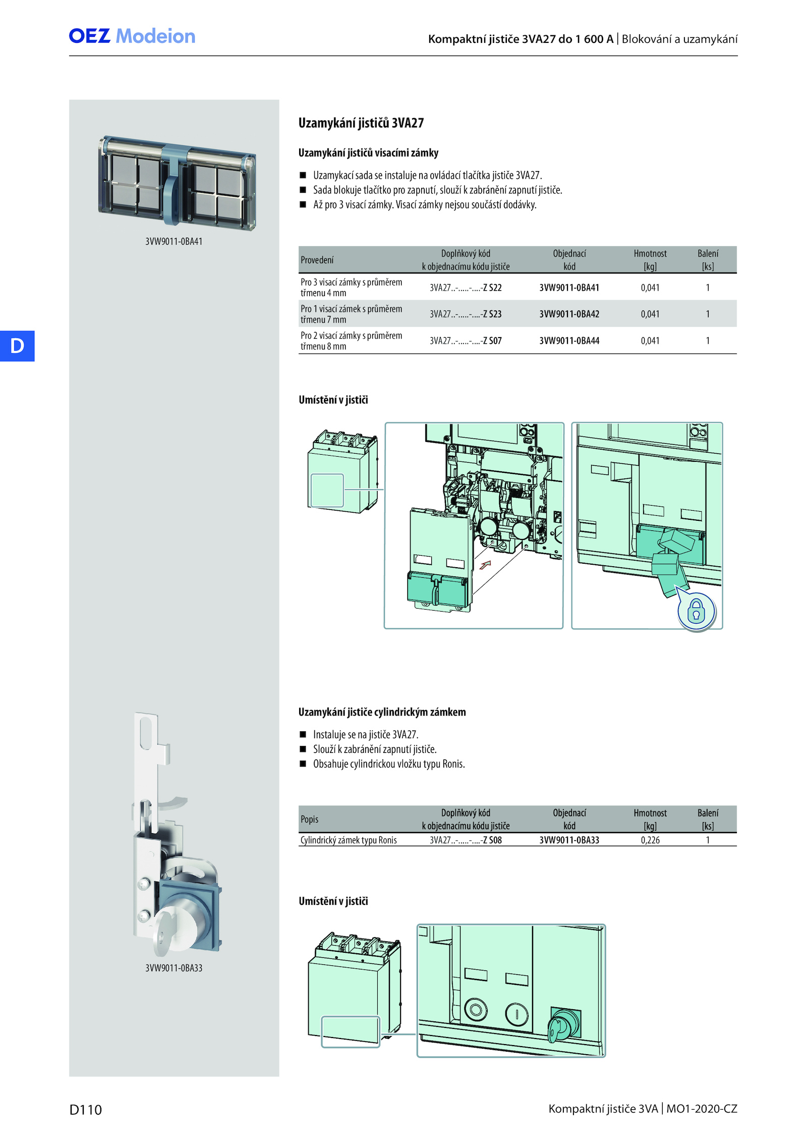 Až pro visací zámky.-...D110 Kompaktní jističe 3VA MO1-2020-CZ