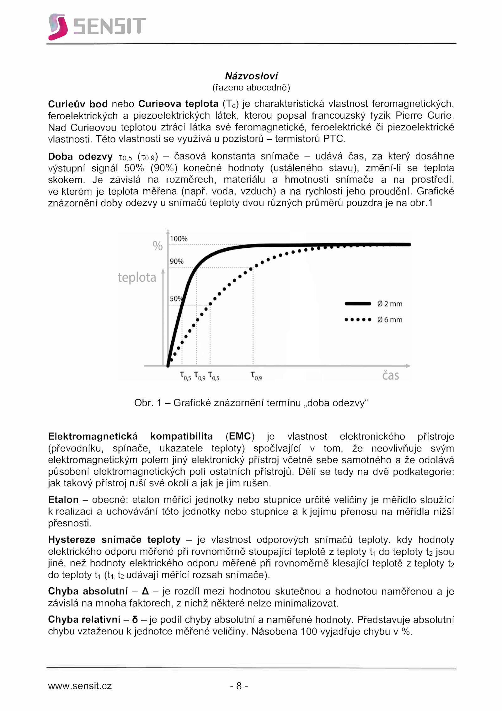 znázornění doby odezvy snímačů teploty dvou různých průměrů pouzdra obr. závislá rozměrech, materiálu hmotnosti snímače prostředí,