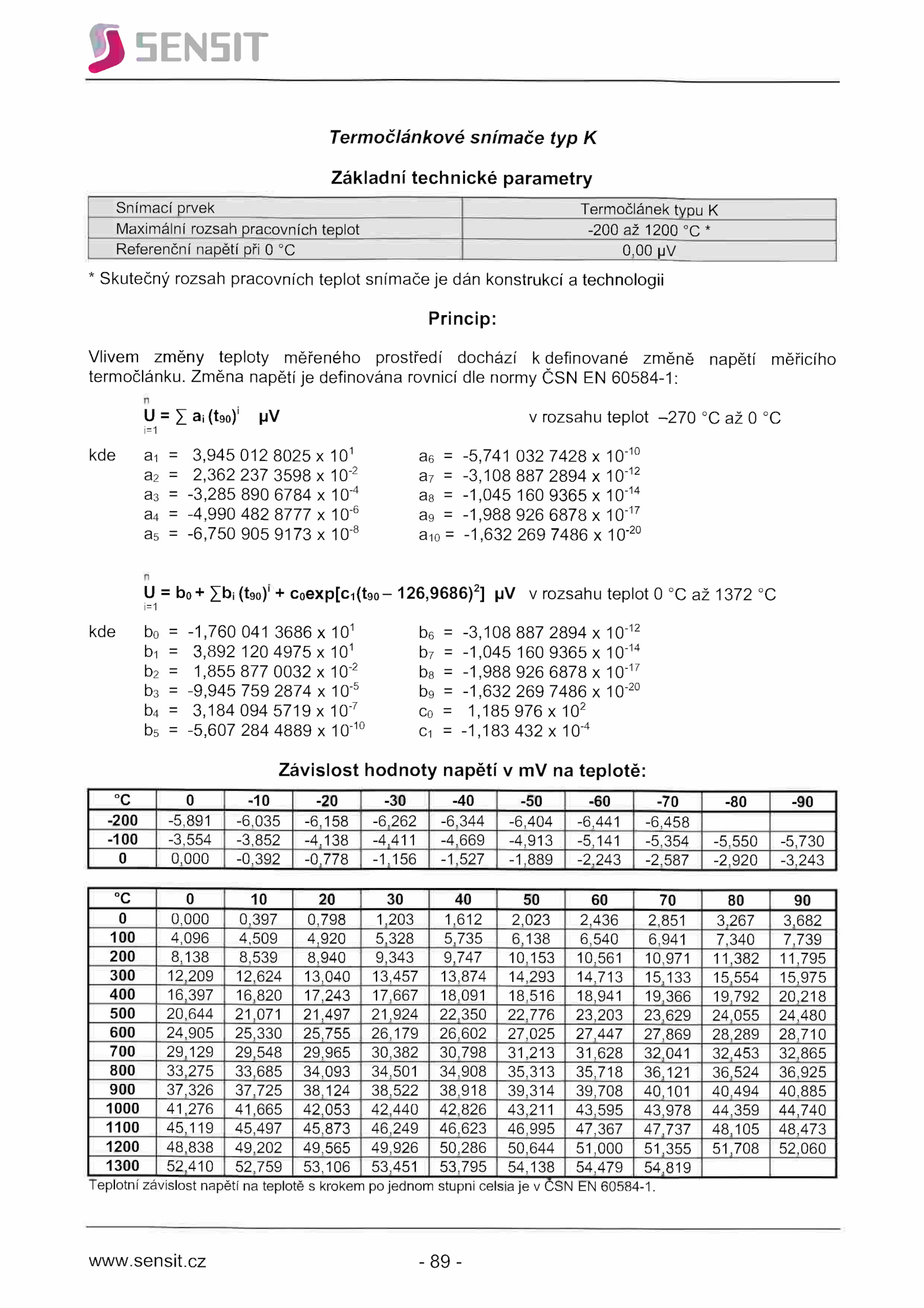 Teplotní závislost napětí teplotě krokem jednom stupni celsia ČSN 60584-1