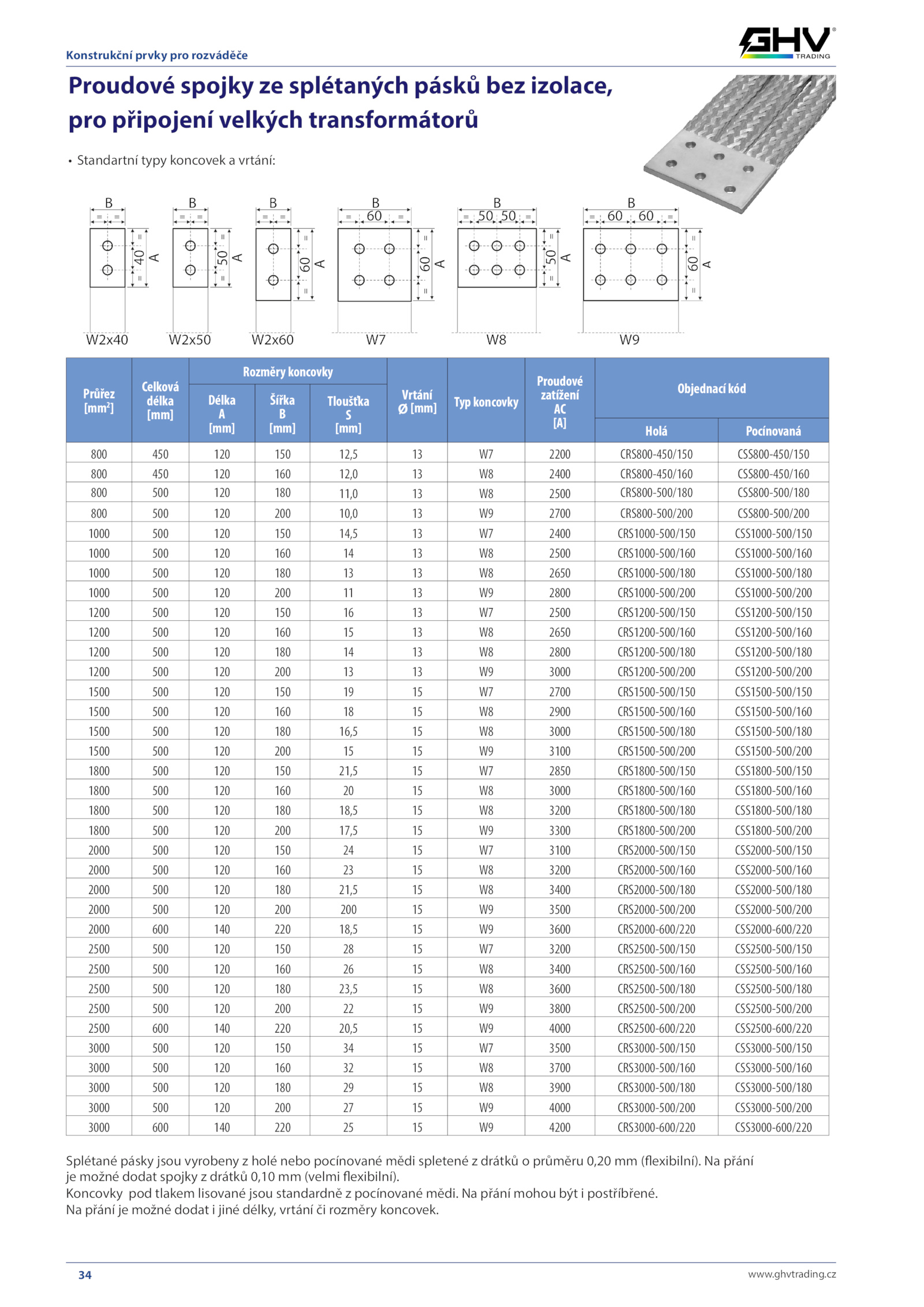Splétané pásky jsou vyrobeny holé nebo pocínované mědi spletené drátků průměru 0,20 (flexibilní).