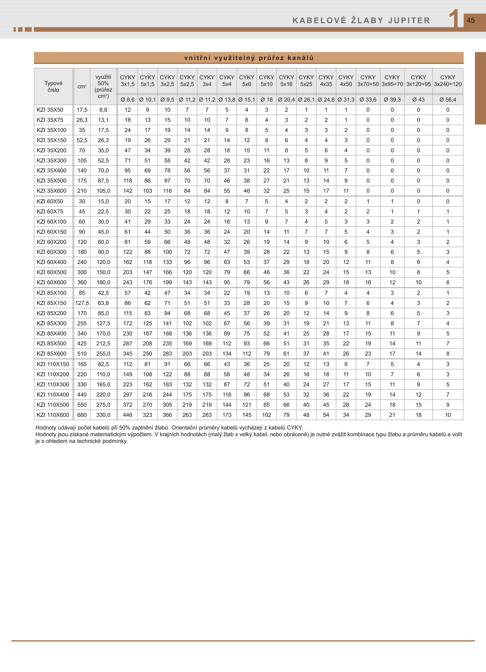 Orientační průměry kabelů vycházejí kabelů CYKY. krajních hodnotách (malý žlab velký kabel, nebo obráceně) nutné zvážit kombinace typu žlabu průměru kabelů volit