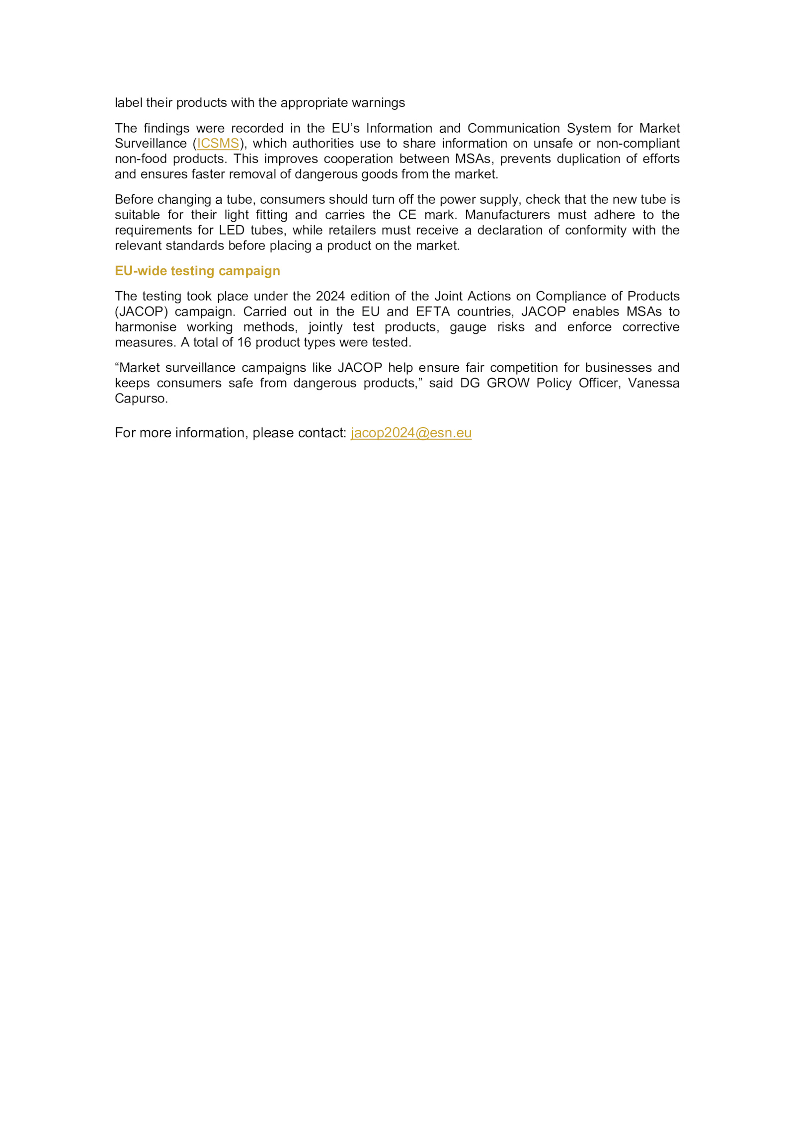 requirements for LED tubes, while retailers must receive declaration conformity with the