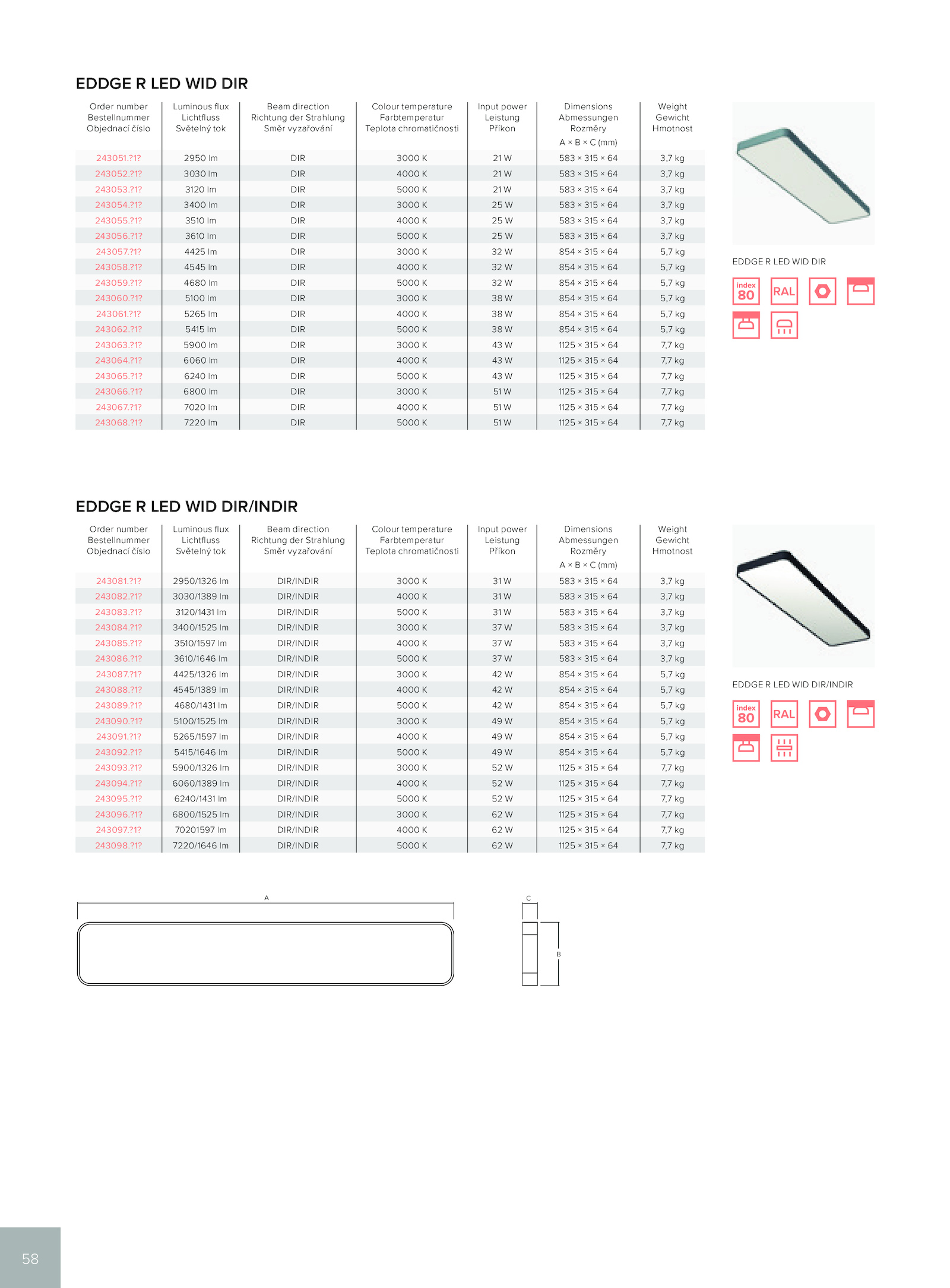 EDDGE LED WID DIR/INDIR