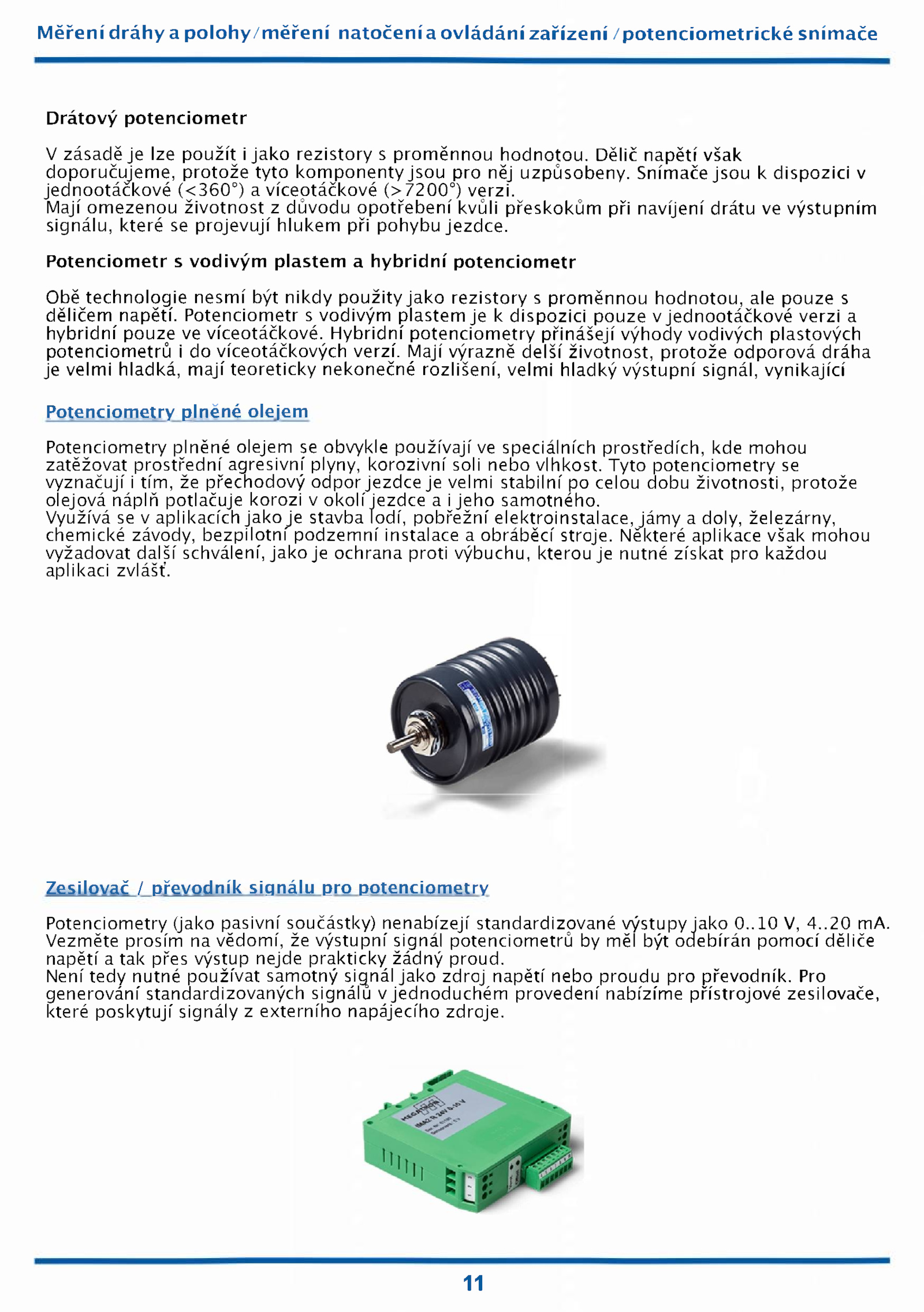 potenciometrů víceotáčkových verzí.Měření dráhy polohy/měření natočenia ovládání zařízení/potenciometrické snímače