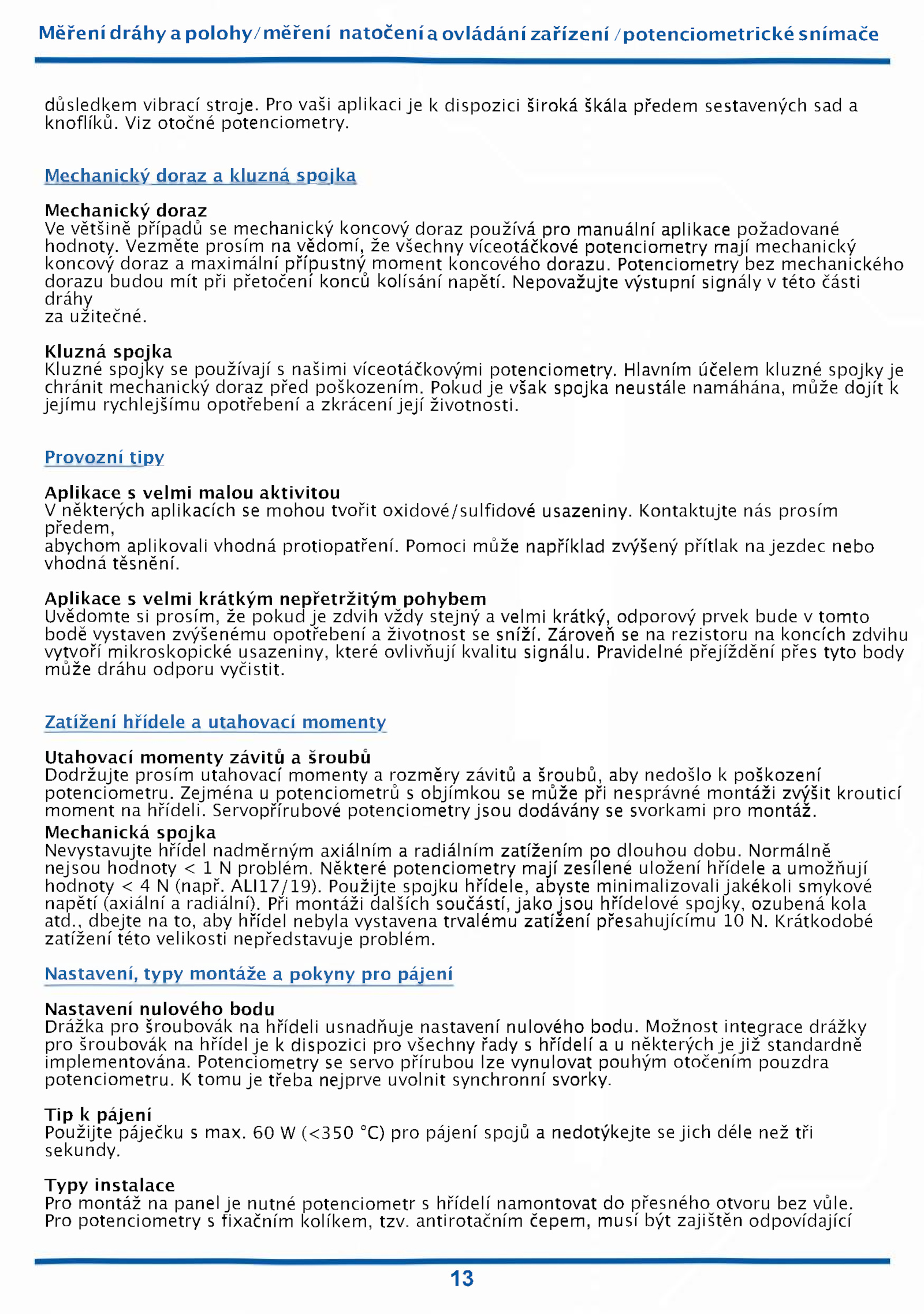 za užitečné. Servopřírubové potenciometry jsou dodávány svorkami pro montáž. Zároveň rezistoru koncích zdvihu