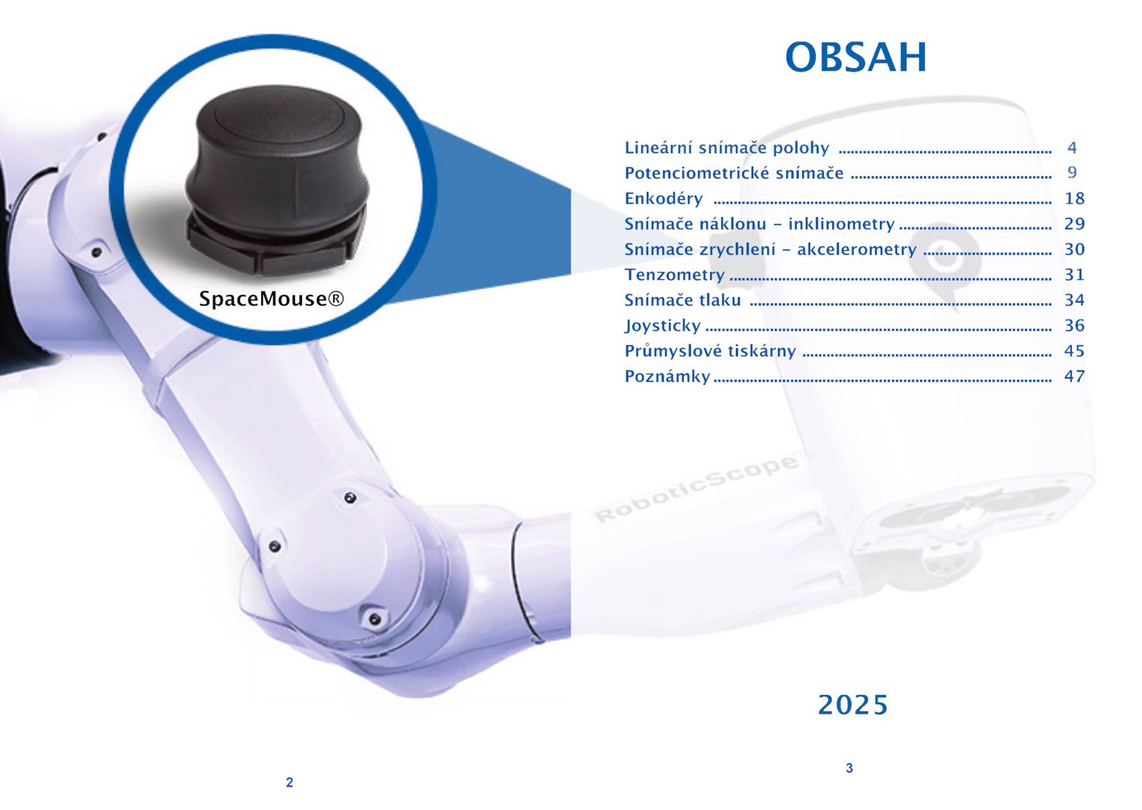 ................................................................ 34 Joysticky................................... 29 Snímače zrychlení akcelerometry........................................................................................OBSAH Lineární snímače polohy ............. 30 Tenzometry......................................... 31 Snímače tlaku ................................... 18 Snímače náklonu inklinometry.......................... 9 Enkodéry ..................................................................................................................................... 47 ô 2025 3 2 ....................................... 4 Potenciometrické snímače.................................................................. 45 Poznámky.......................... 36 Průmyslové tiskárny......
